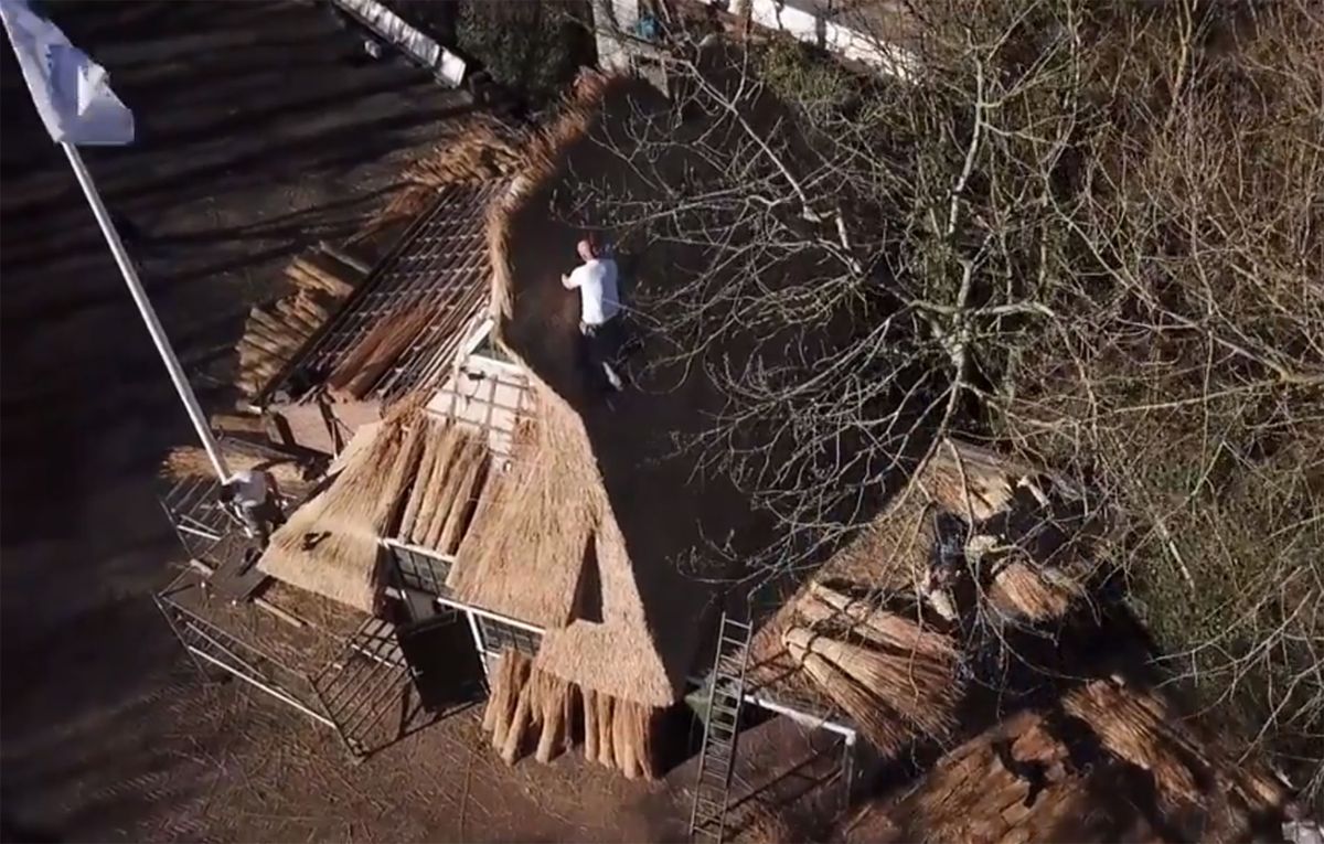 Het mooie ambacht van het rietdekken in beeld gebracht met onze drone.