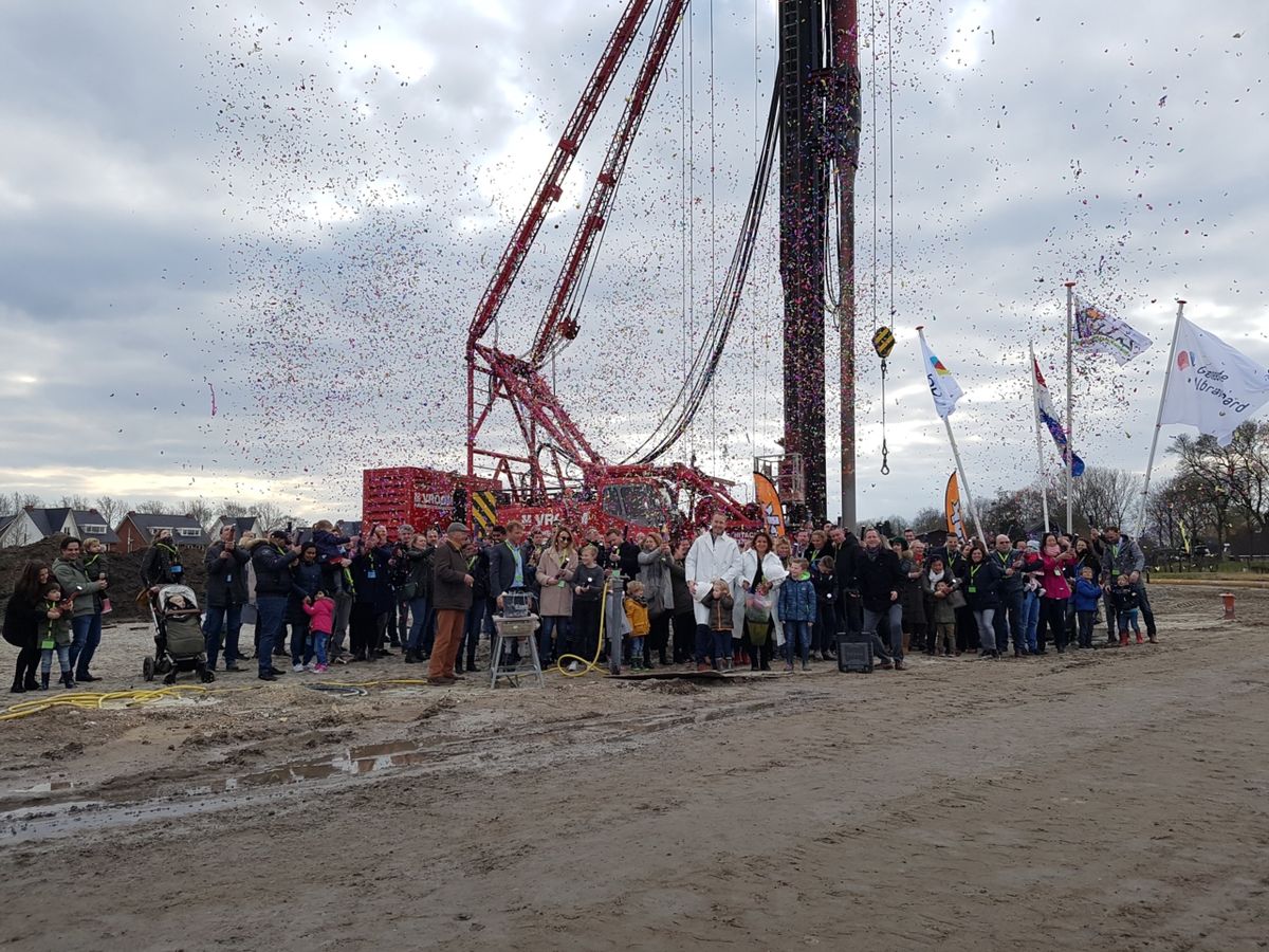 De bouw van een deel van tuindorp in Essendael (Rhoon) is van start! In opdracht van BPD verrijst hier een vriendelijke buurt, geïnspireerd op het rijk gedetailleerde Rijksmonument tuindorp 't Lansink. Een groot deel van de nieuwe bewoners van de tachtig woningen in Essenpark gaf acte de présence. De bewoners van de woning waarvan de paal de grond in ging, kregen een snelcursus heien. Daarna mochten zij zelf de eerste paal onder hun huis erin slaan!