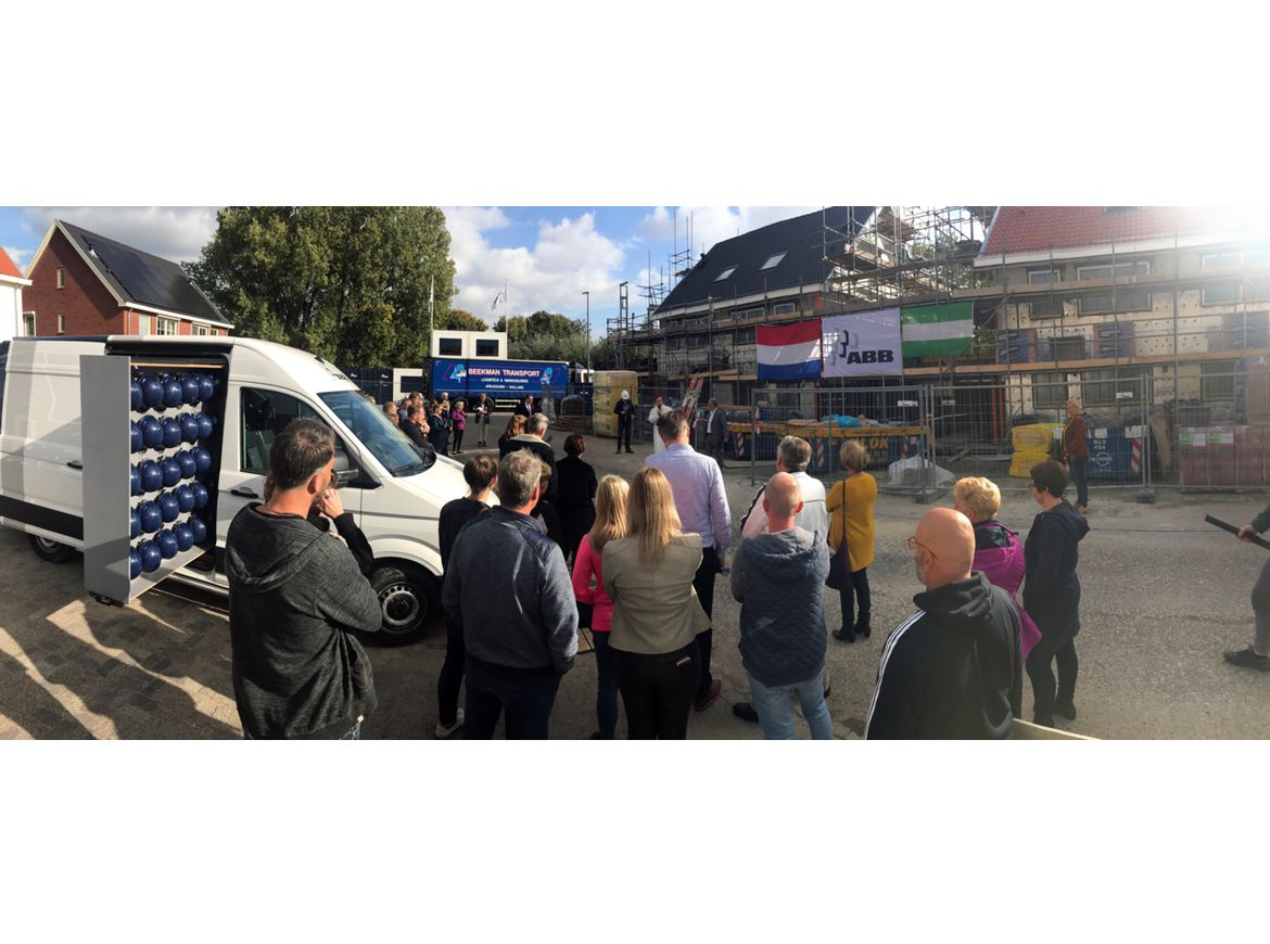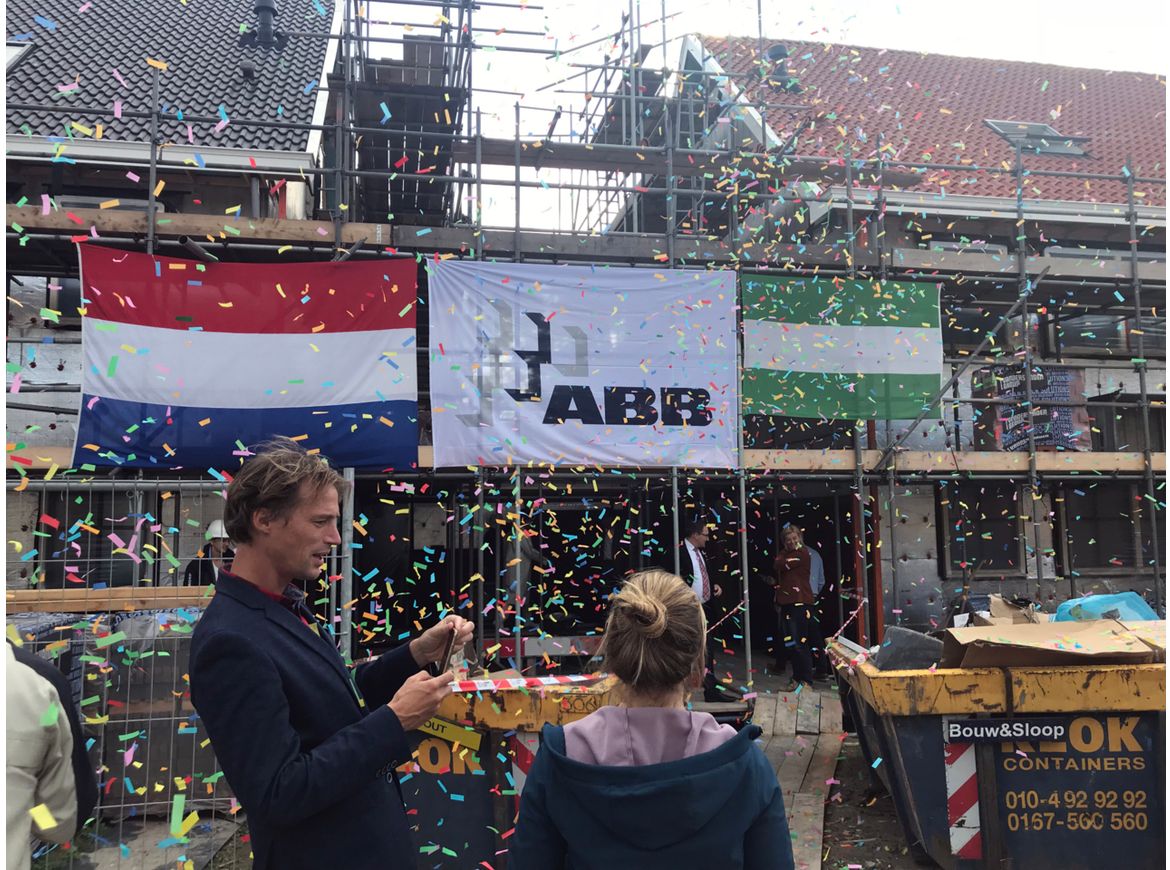 Met twaalf ‘energie nul’ tweekappers is het woonbuurtje in Rozenburg nu bijna compleet. Reden voor ABB Bouwgroep om de toekomstige bewoners te trakteren en voor wethouder Kurvers een reden om letterlijk een steentje bij te dragen. Hoewel de woningen nog in de steigers staan is het eindbeeld van de 56 woningen aan de Wilgentuinen nu al zichtbaar: een vriendelijke woonbuurt die aansluit bij de bestaande woningbouw door wisselende nokrichtingen en een divers materiaalgebruik. De architect van dit project is Willem-Jan Bouwman, onze collega die ons dit jaar is ontvallen.