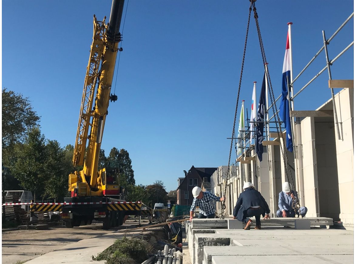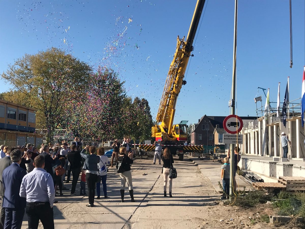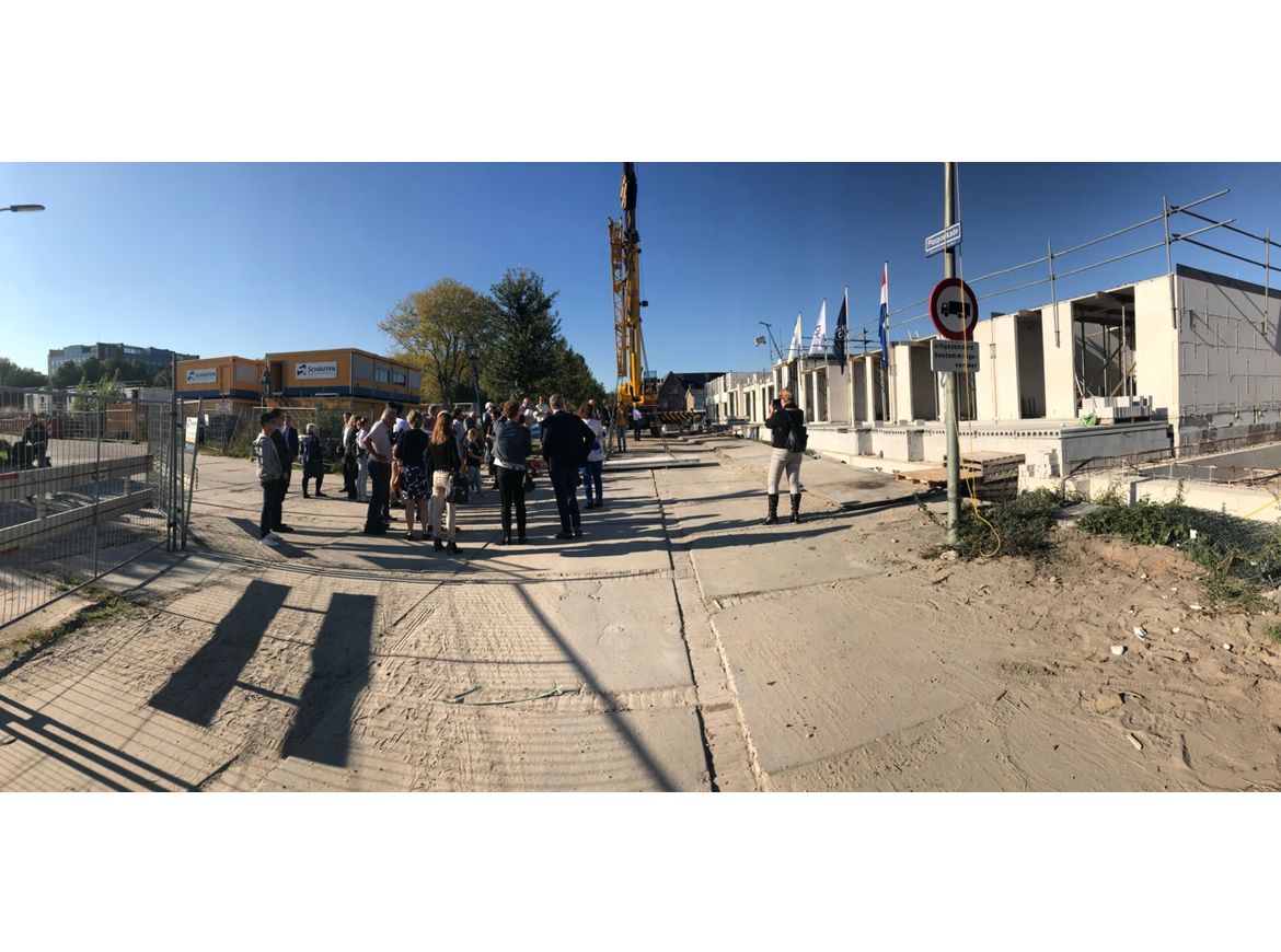 Ook de tweede fase van de Plaspoelkade krijgt gestalte! Tijdens een feestelijk moment, met fantastisch nazomers weer, hebben Jan-Willem Rouwendal (wethouder Leidschendam-Voorburg) en Chris Schouten (directeur Schouten Bouw) een terrasdeel op zijn plaats gelegd. Met hulp van uitvoerder Sjaak Meuldijk ging dit uiteindelijk goed!