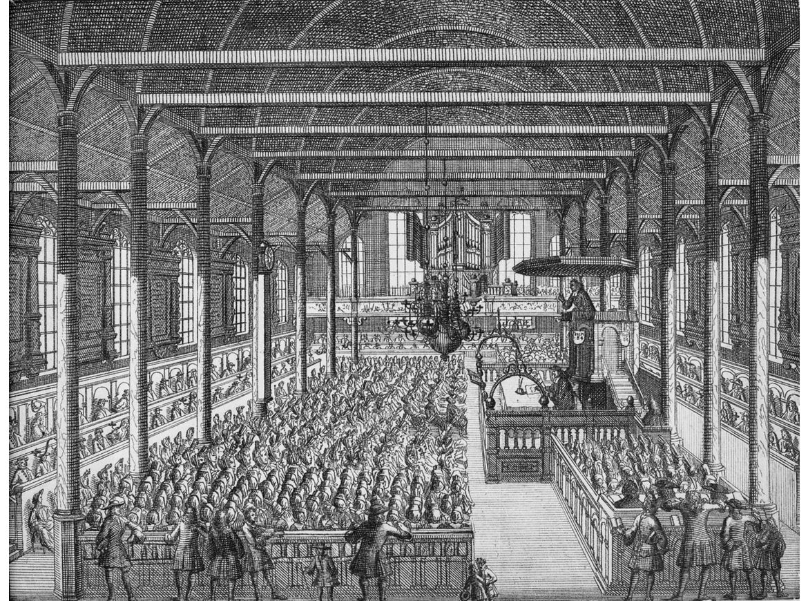 Eén van de unieke elementen aan dit pand is dat deze ten tijde van de bouw (1618) niet zichtbaar was vanaf de straat. De kerk ging schuil achter enkele huizen aan de Hooglandse Kerkgracht. Via een poort in één van de woonhuizen was de kerk toegankelijk. Na de vrijheid van godsdienst (1796) zijn eind 19e eeuw de woonhuizen gesloopt en ontstond er een kerkpleintje voor het pand. Aansluitend is er een fraaie neorenaissance-gevel gerealiseerd om zowel de kerk fysiek een representatieve uitstraling te geven én om het emancipatiestreven van de Luthersen zichtbaar te maken.