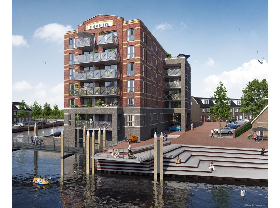 Het Hamhuis is onderdeel van het project 'Wonen aan de Ham', een nieuwbouwproject aan de voormalige middeleeuwse haven van Bergen op Zoom met 21 appartementen en 14 herenhuizen.