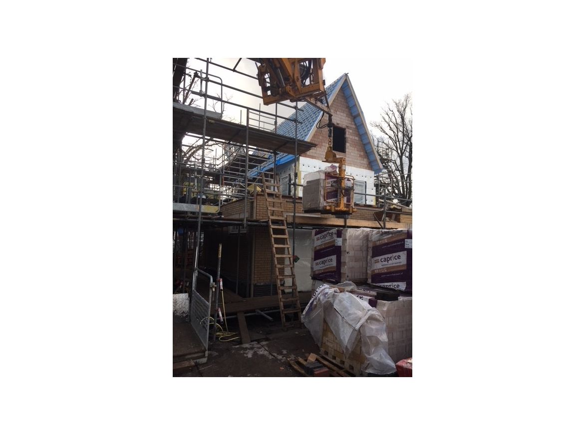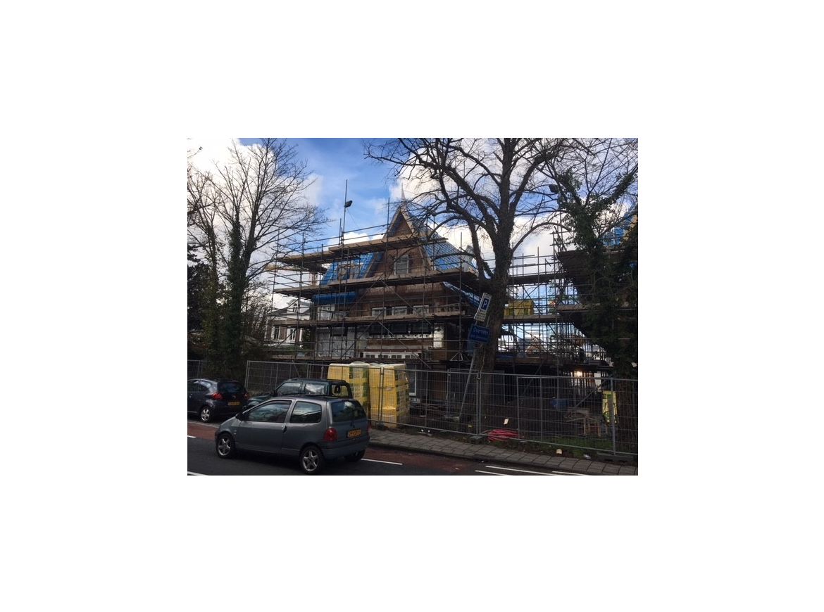Vandaag werd gevierd dat het hoogste punt van deze villa aan de Zijlweg in Overveen is bereikt. De contouren van de statige vrijstaande woning zijn nu dan ook al goed te zien. De villa wordt nog gestuukt in een licht grijze kleur en in de nok wordt hij bekleed met hout.