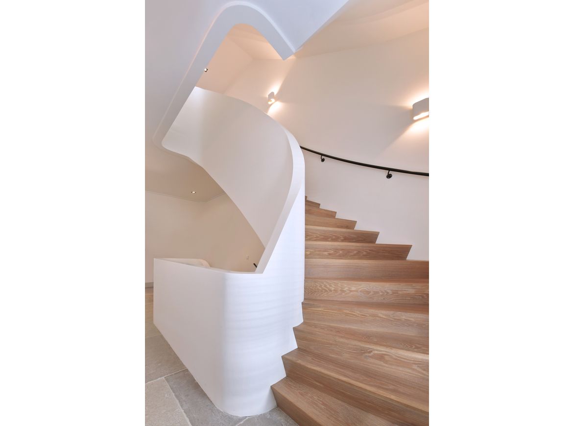 Voor een kavel grenzend aan landgoed de Paauw hebben wij deze rietgedekte woning ontworpen. Het huis heeft een ruime, vierkante opzet, waarbij de vooruitgeschoven volumes het gevelbeeld parcelleren. Het bijgebouw met tuinkamer en het tuinhek zijn in de stijl van het huis mee-ontworpen. Binnen draait een scherp gesneden trap rondom een vide. Voor meer informatie: zie de projectpagina.