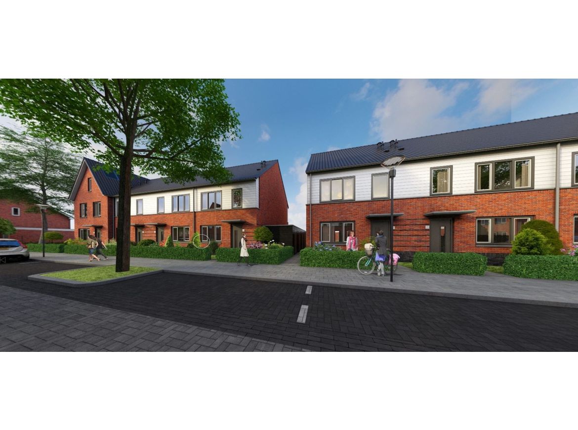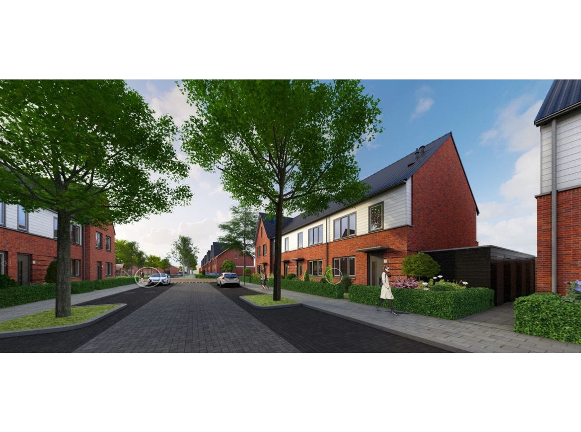 Voor Verwelius hebben we hier in totaal 100 woningen ontworpen die in twee fasen worden gebouwd. In de eerste fase zijn 6 woningen Nul-op-de-Meter-woningen voor de woningbouwcorporatie Meerwonen.