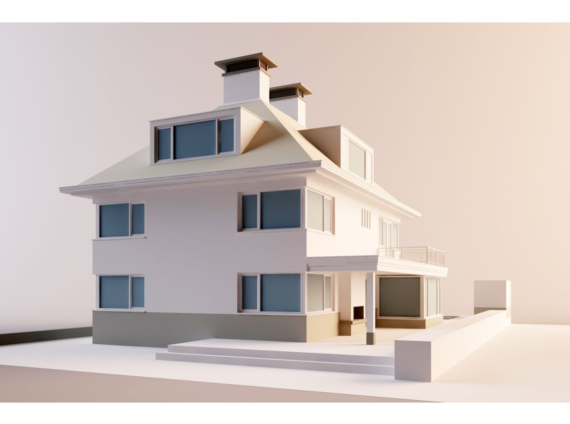 Bovenop de gemetselde plint zal de villa wit gekeimd worden. Op het (schild)dak komen strakke keramische pannen. Het ontwerp van de villa heeft grote hoekramen, met slanke donkere profielen. Rond de villa zijn verschillende luifels ontworpen, welke voor beschutting zorgen bij de entree en als veranda bij de buitenhaard en het zwembad.