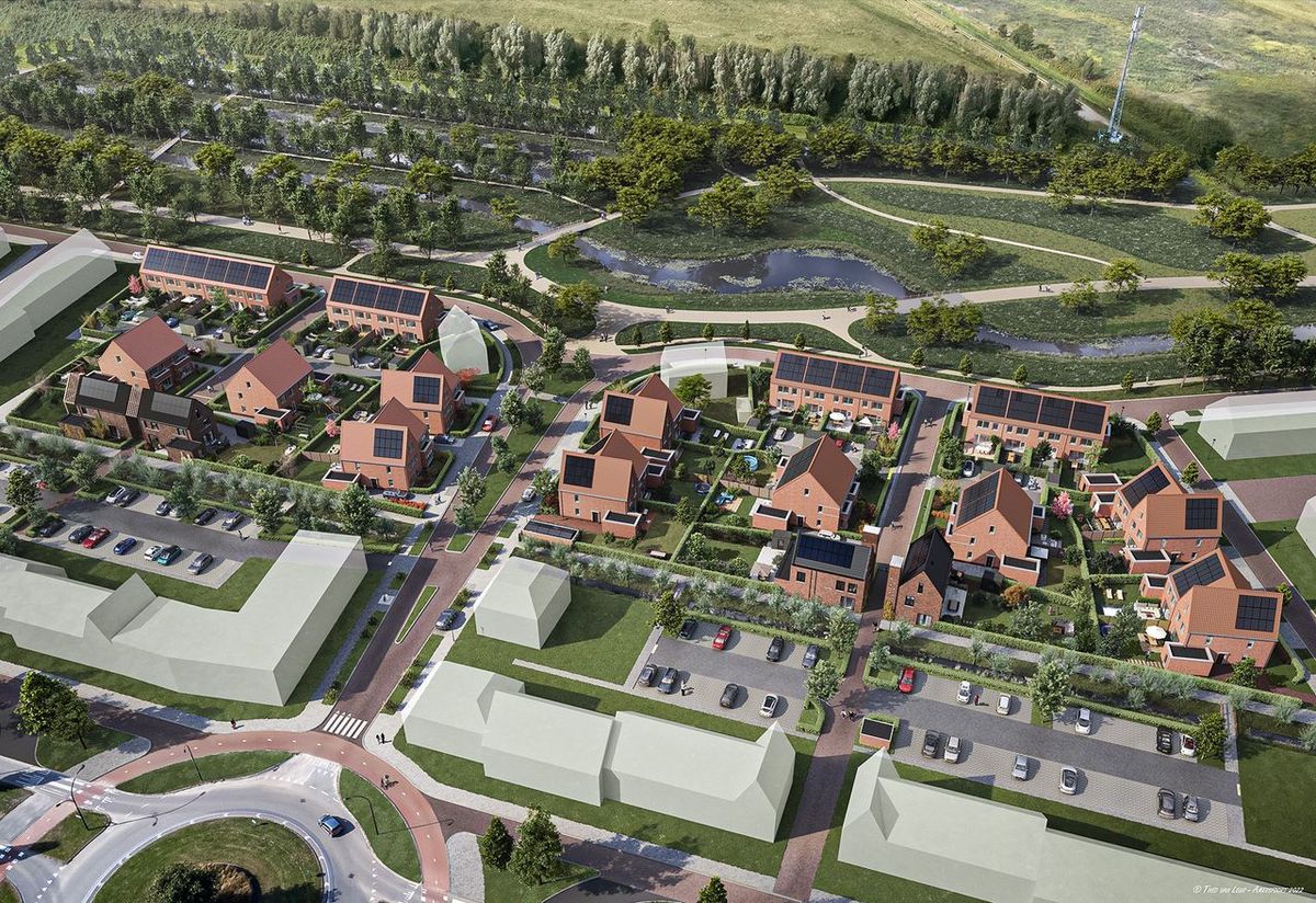 Van Manen ontwierp voor dit sluitstuk van de stad de rijwoningen en de twee-onder-een-kapwoningen, geïnspireerd door fraaie buurten die ook aan parken grenzen, zoals de Indische buurt in Amersfoort. De woningen vormen een architectonische eenheid, met doorlopende banden in het metselwerk, met daarbinnen individuele accenten zoals erkers en franse balkons. De warme genuanceerde donkerrode stenen en oranje rode daken vormen een mooi palet tegenover het groen van het park.