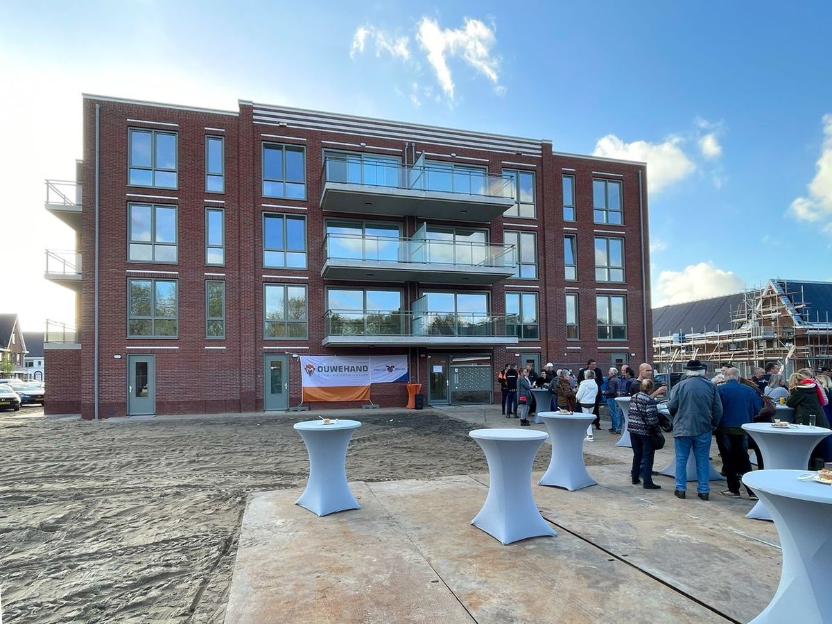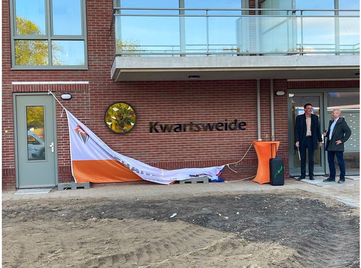 Afgelopen week mochten wij trotse toeschouwer zijn van de oplevering van appartementengebouw Kwartsweide in Leerdam. Woningbouwcorporatie KleurrijkWonen deed met de onthulling van de gevelornamenten de officiële handeling. De 28 sociale energiezuinige huurappartementen zijn meteen in gebruik genomen door de bewoners. Op naar het volgende appartementengebouw aan de andere zijde van het parkachtige landschap: de Glazenier.