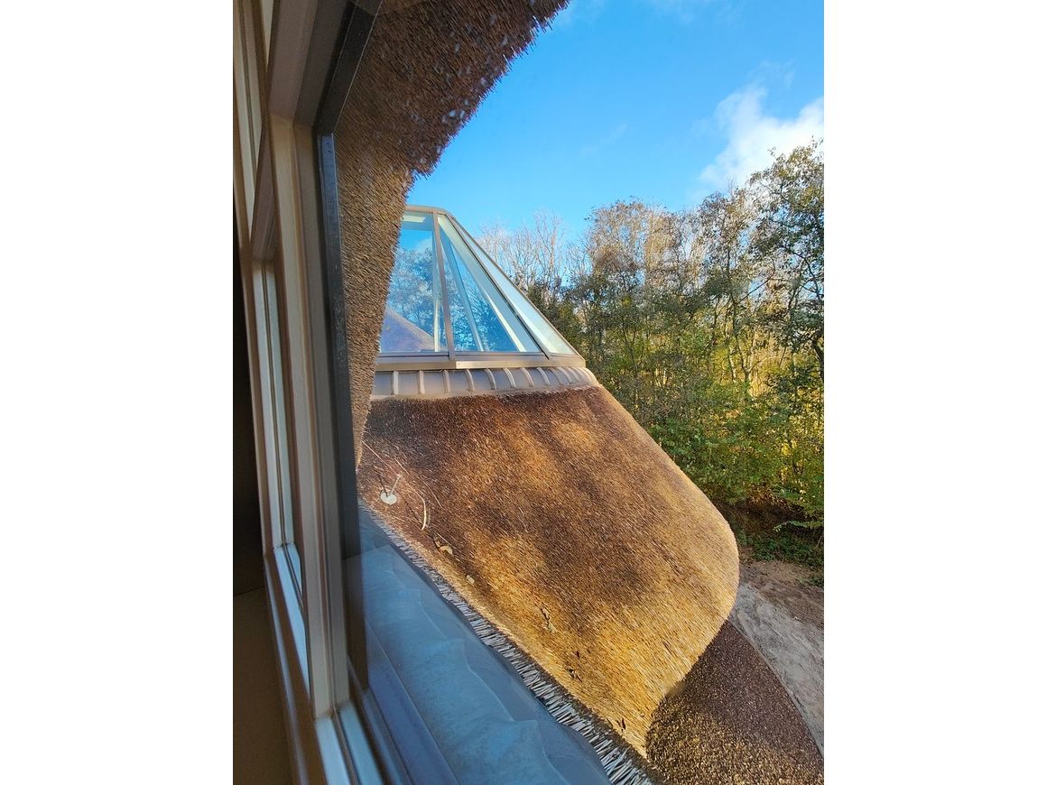 De rondingen van het kavel zijn vertaald in de organische vormgeving van de villa. Met een palet van natuurlijke materialen gaat het ontwerp op in de omgeving. Het ronde ‘torentje’ met een gebogen dakraam als accent richting het vrije uitzicht.