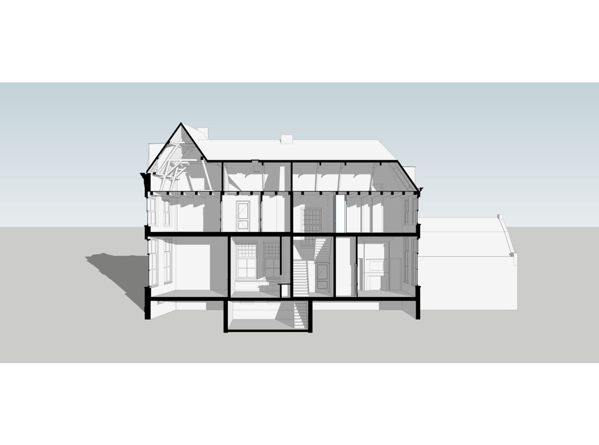 Na maanden van ontwerpen, documenteren, inmeten en modelleren zijn we gestart met de zorgvuldige ontmanteling van het rijksmonument aan de Voorstraat 69 in Noordwijk-Binnen. Dit is in de restauratie altijd een spannend moment waarbij het zichtbaar worden van de verschillende historische lagen voortdurend voor verrassingen zorgt. Het is een interessante zoektocht waarbij er (letterlijk) steeds meer tevoorschijn komt van de geschiedenis van het pand. De extra informatie die vrijkomt bij de ontmanteling implementeren we in het 3d revit model. Hiermee is er altijd een up-to-date model die alle partijen van de juiste informatie voorziet.