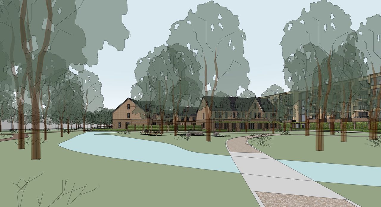 Architectonisch wordt ingezet op een verfijnde detaillering, duurzame materialen en een tijdloze uitstraling. De bebouwing varieert in hoogte om aan te sluiten bij de omgeving, en binnen de wijk zijn ontmoetingsruimtes geïntegreerd, zoals een buurthuis bij de entree. De plinten van de gebouwen worden vergroend, erfafscheidingen worden uitgevoerd in hagen en pergola’s, en nestkasten als onderdeel van de architectuur. Door gebruik te maken van hoogwaardige materialen en aandacht voor detaillering, wordt een verfijnde esthetiek nagestreefd die de identiteit van Oegstgeest versterkt. De variatie in woningtypen en de zorgvuldige plaatsing van gebouwen en groenvoorzieningen zorgen voor een woonomgeving die niet alleen functioneel is, maar ook een meerwaarde biedt voor zowel bewoners als de bredere gemeenschap.