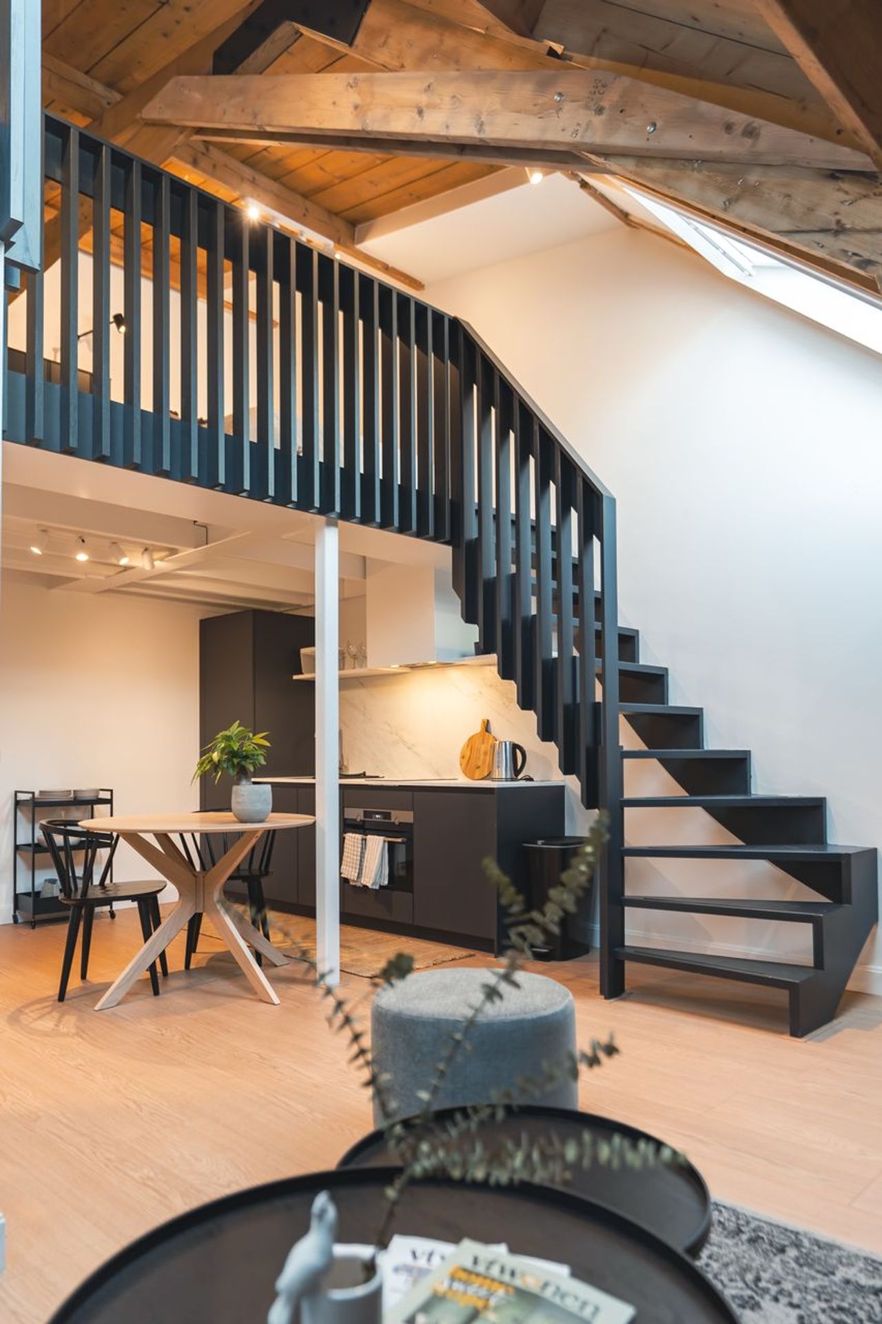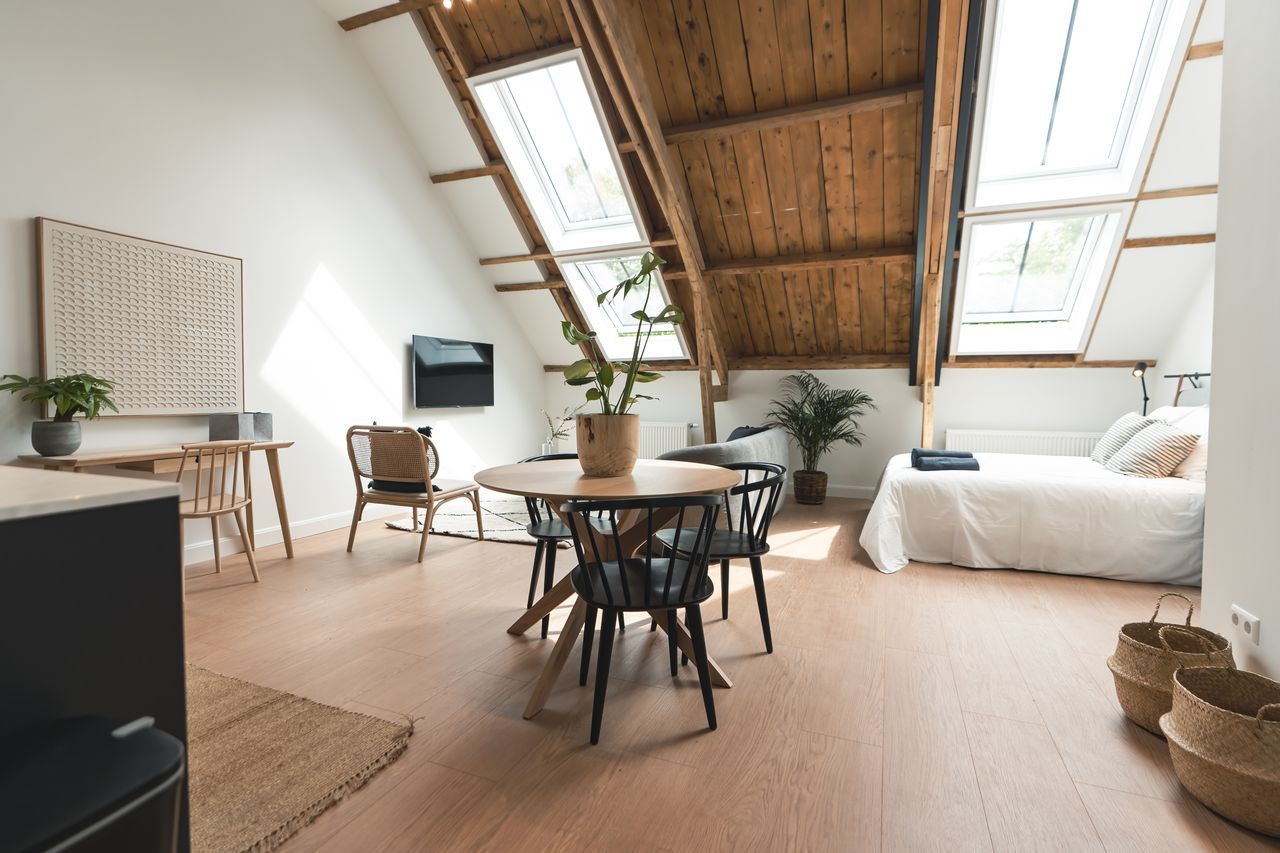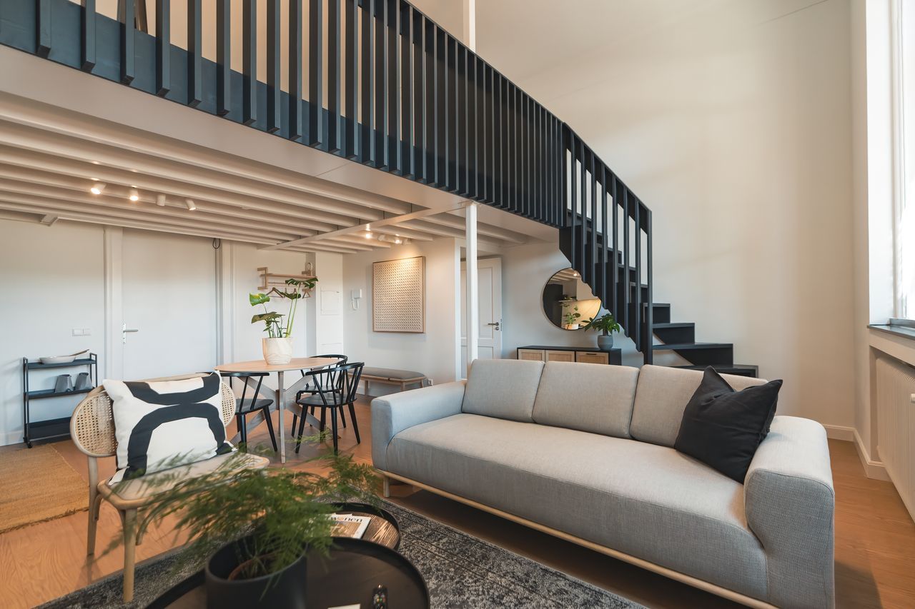 De geornamenteerde algemene ruimtes met natuurstenen trappen, architraven, lambriseringen en geprofileerde plafonds zijn daar waar nodig hersteld. In de appartementen zijn maatwerk trappen ontworpen die naadloos overgaan in de balustrade van de entresol verdieping. Deze dragen in combinatie met het open balklaag plafond van de entresol dragen in grote mate bij aan de ruimtelijke beleving van de voormalige leslokalen.
