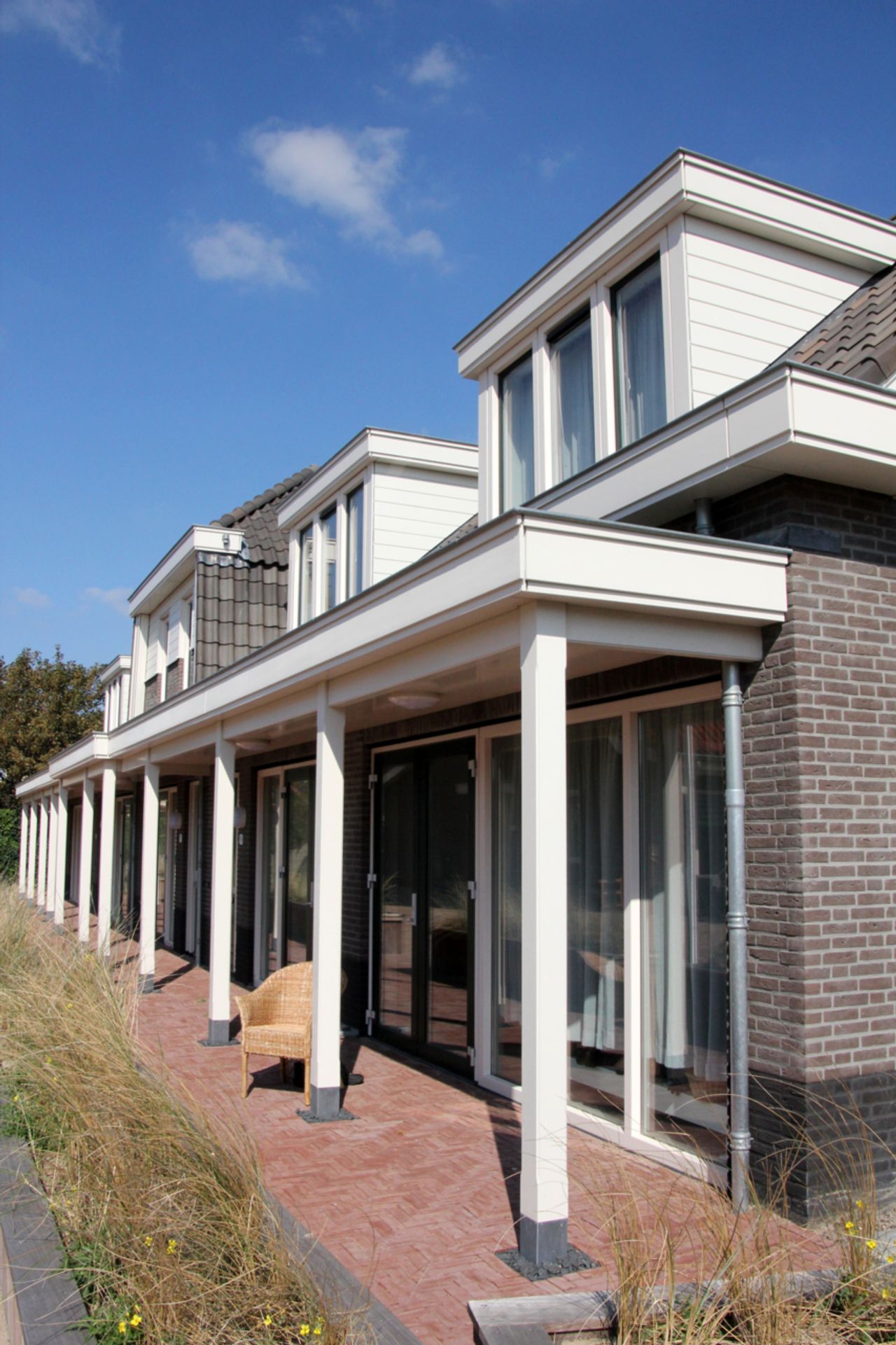 Het ontwerp bestaat uit korte rijen woningen met ieder een eigen identiteit. Enkele woningen hebben een kleine achtertuin, maar vanwege de bezonning zijn de woningen vooral gericht op het collectieve hof. Hoewel ze wat betreft vormgeving en materialissering van elkaar verschillen, delen ze bijzondere elementen zoals een veranda. Deze verlengt niet alleen het buitenleven, ze vormen ook een prettige grens tussen de privé buitenruimten en het collectieve hofje. Het Noordwijkse gevoel wordt onderstreept door de mee-ontworpen erfafscheidingen in de vorm van bakken met helmgras.