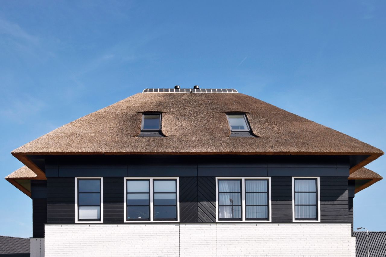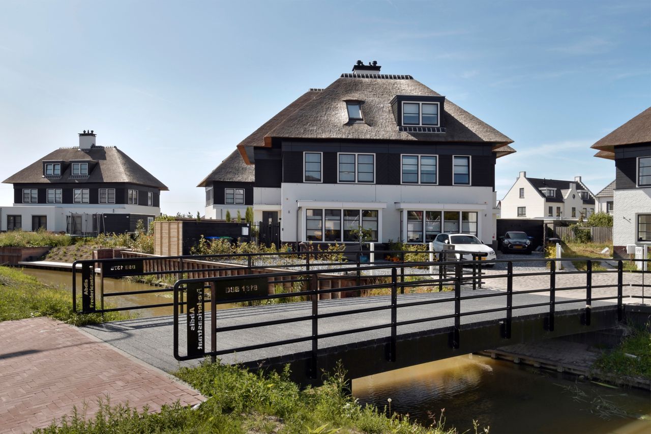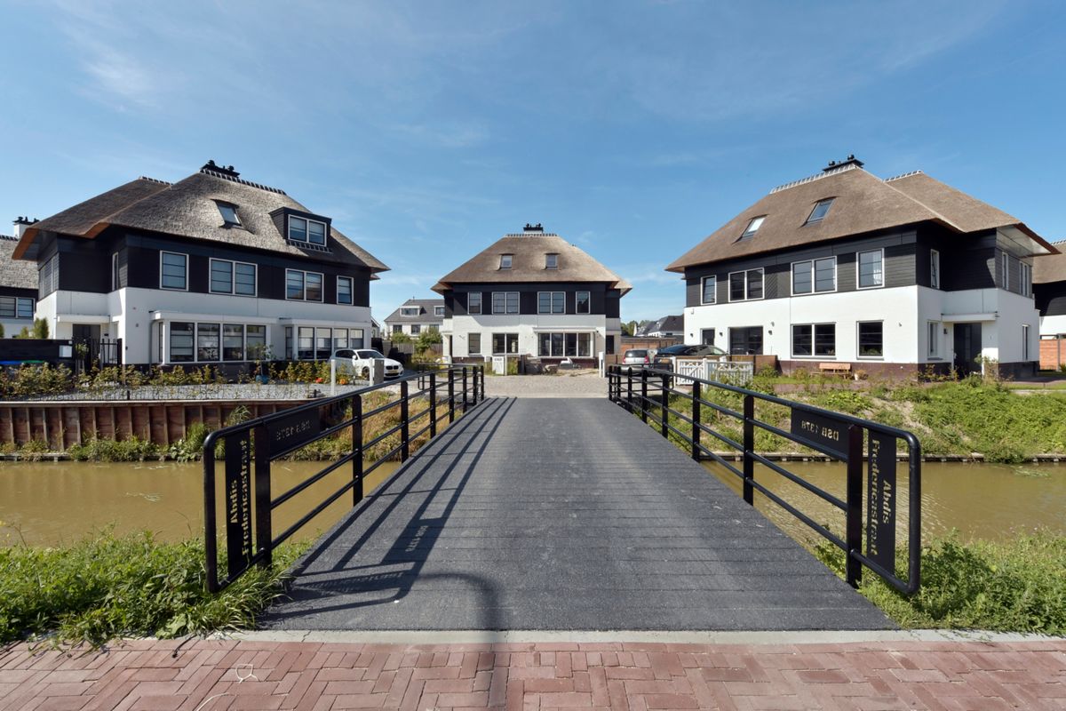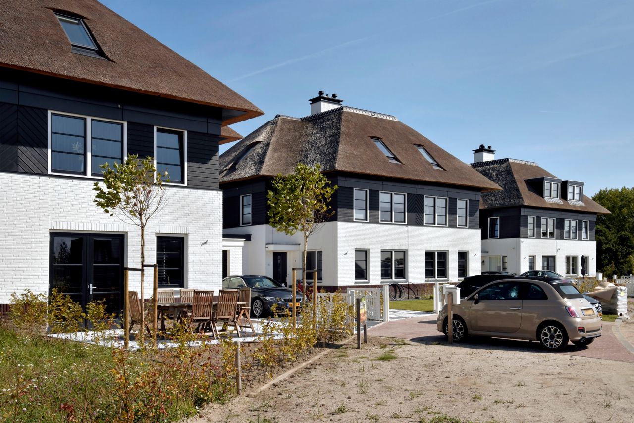 Het merendeel van de tweekappers is georiënteerd op halfronde hoven. Deze schakering rondom de hoven creëert een fijn en kleinschalig karakter. De natuurlijke materiaalkeuze met karakteristieke rieten daken, zwart houten gevelbekleding en wit gekeimd metselwerk passen goed binnen de natuurrijke omgeving van het villapark.
