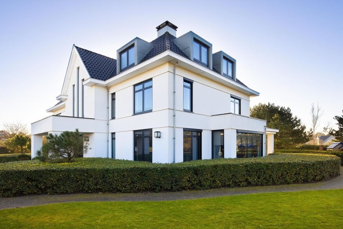 Deze luxe familievilla ligt op een steenworp afstand van het Noordwijkse strand. De strakke wit gestuukte woning is van alle gemakken voorzien en heeft bijvoorbeeld een wijnkelder, zwembad, fitnessruimte en bioscoopruimte. Door gebruik te maken van het duinlandschap heeft de woning nog een hele verdieping in het duin, die zich aan de achterkant opent naar een van de terrassen.