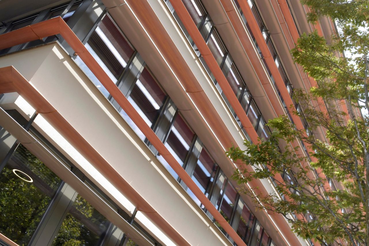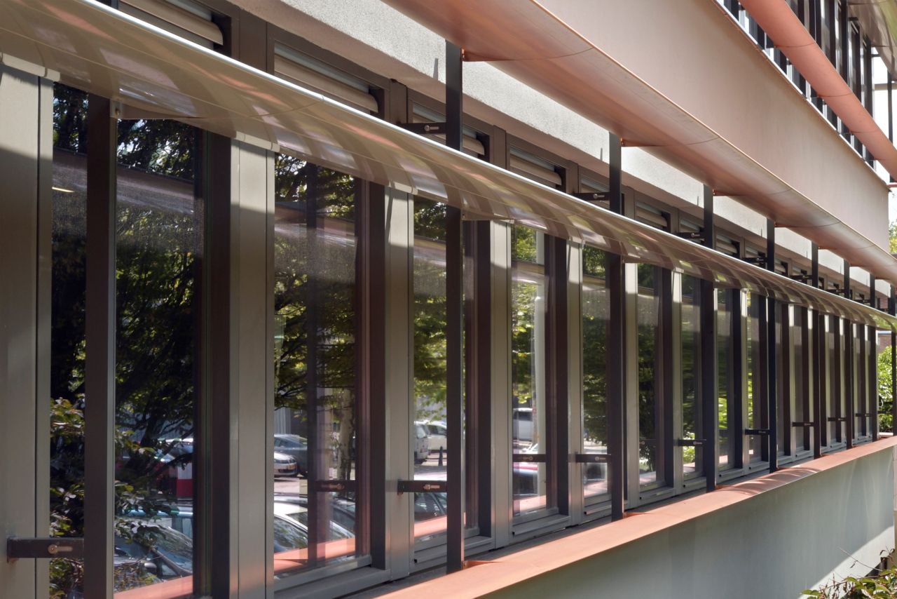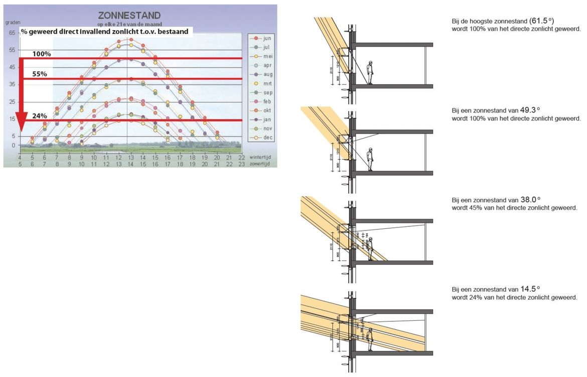 Naast de zagerijen van Koninklijke Dekker in Den Haag staat het hoofdkantoor uit begin jaren zeventig. Dekker Vastgoed&Energie wilde graag dit pand een face-lift geven. Wij zagen de potentie de horizontale lijnen van de oorspronkelijke architectuur te versterken door het aanbrengen van schoepenzonwering. Hierdoor wordt directe zoninstraling in de zomers voorkomen en oververhitting tegengegaan, wat voorheen werd ervaren.