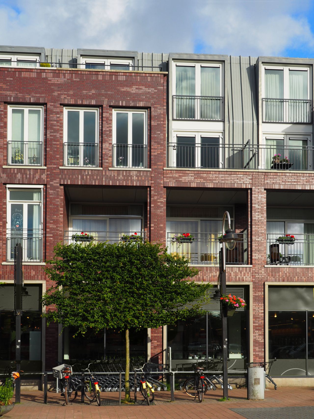 In de gevels is gezocht naar eenvoud. Door de buitenruimtes en galerijen achter de gevels te plaatsten wordt verrommeling van het gevelbeeld voorkomen. Bij de materialisatie van de blokken is aansluiting gezocht bij de bestaande, dorpse bebouwing. De blokken hebben in verschillende kleuren gemetselde gevels, accenten in beton, zinken daken en houten gevelbetimmeringen. De materialisatie geven samen met het kleurgebruik en de metselwerk details het complex een rijke uitstraling.