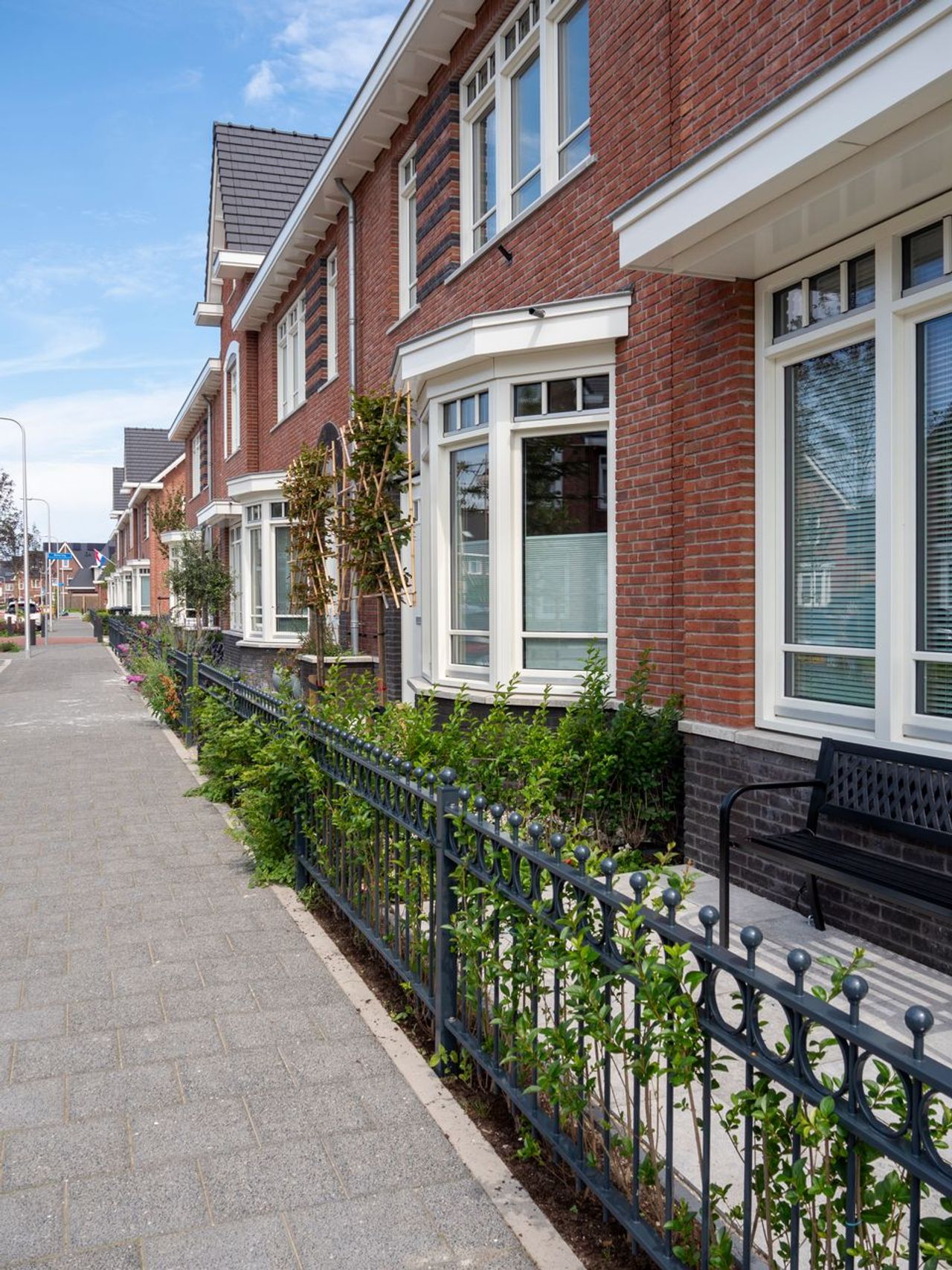 De gevels zijn voorzien van speklagen in het metselwerk en sierlijke, getoogde rollagen rondom de voordeuren, als eerbetoon aan het rijke bouwverleden van het Westland. Deze klassieke elementen passen goed in de omgeving.