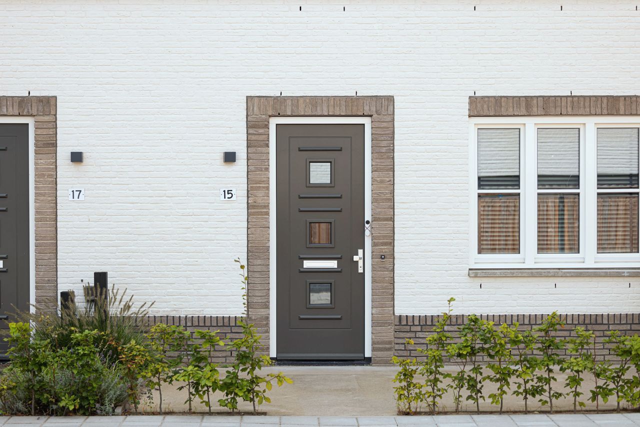 De woningen die grenzen aan het groen zijn voorzien van een veranda aan de voorzijde, wat niet alleen zorgt voor een uitnodigende entree, maar ook voor een natuurlijke aansluiting op het omliggende landschap. Deze details maken de woningen tot een passende uitbreiding van het Koningskwartier.