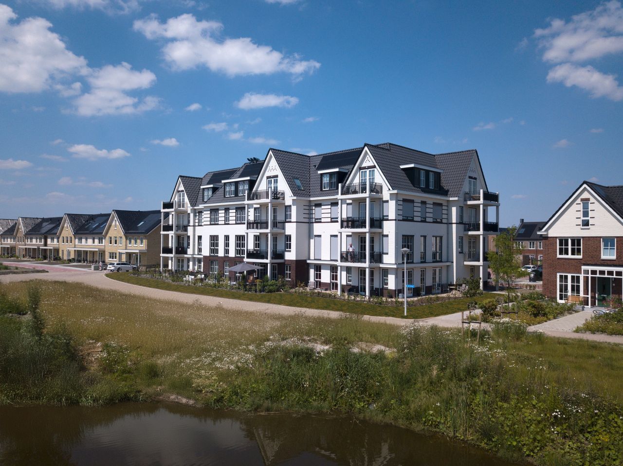 Het appartementencomplex met 18 appartementen is een markant bouwwerk dat fungeert als statige entree van de wijk. Het ontwerp is in harmonie met de architectuur van de grondgebonden woningen en (uiteraard) met dezelfde zorgvuldige aandacht voor detail en hoogwaardige afwerking. Het complex voegt niet alleen woonruimte toe, maar versterkt ook de uitstraling en identiteit van de wijk.