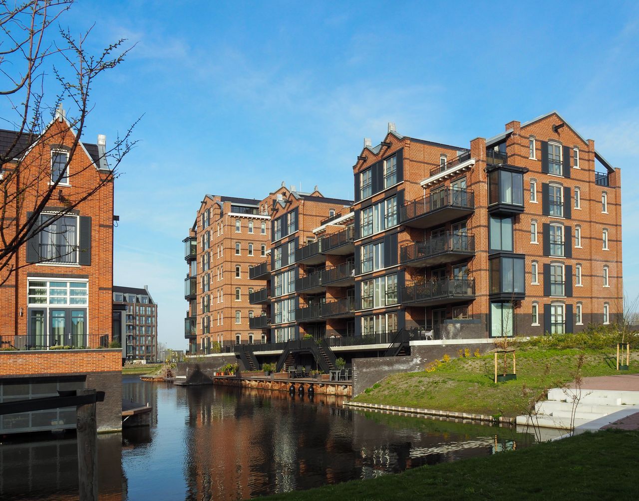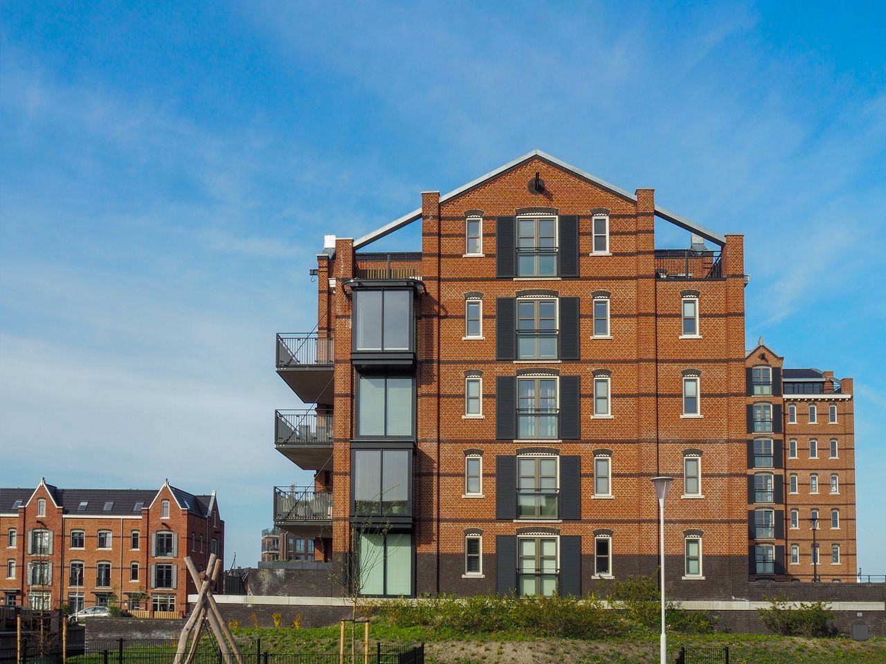 De architectuur is geïnspireerd op oude pakhuizen die aan het water staan. De stoere baksteen met accentlagen en andere gemetselde verfraaiingen, kleine en grote gevelopeningen, luiken en hijsbalken geven dit project de uitstraling die erbij hoort. Kop van Rhijn is exclusief wonen aan het havengebied van Oegstgeest!
