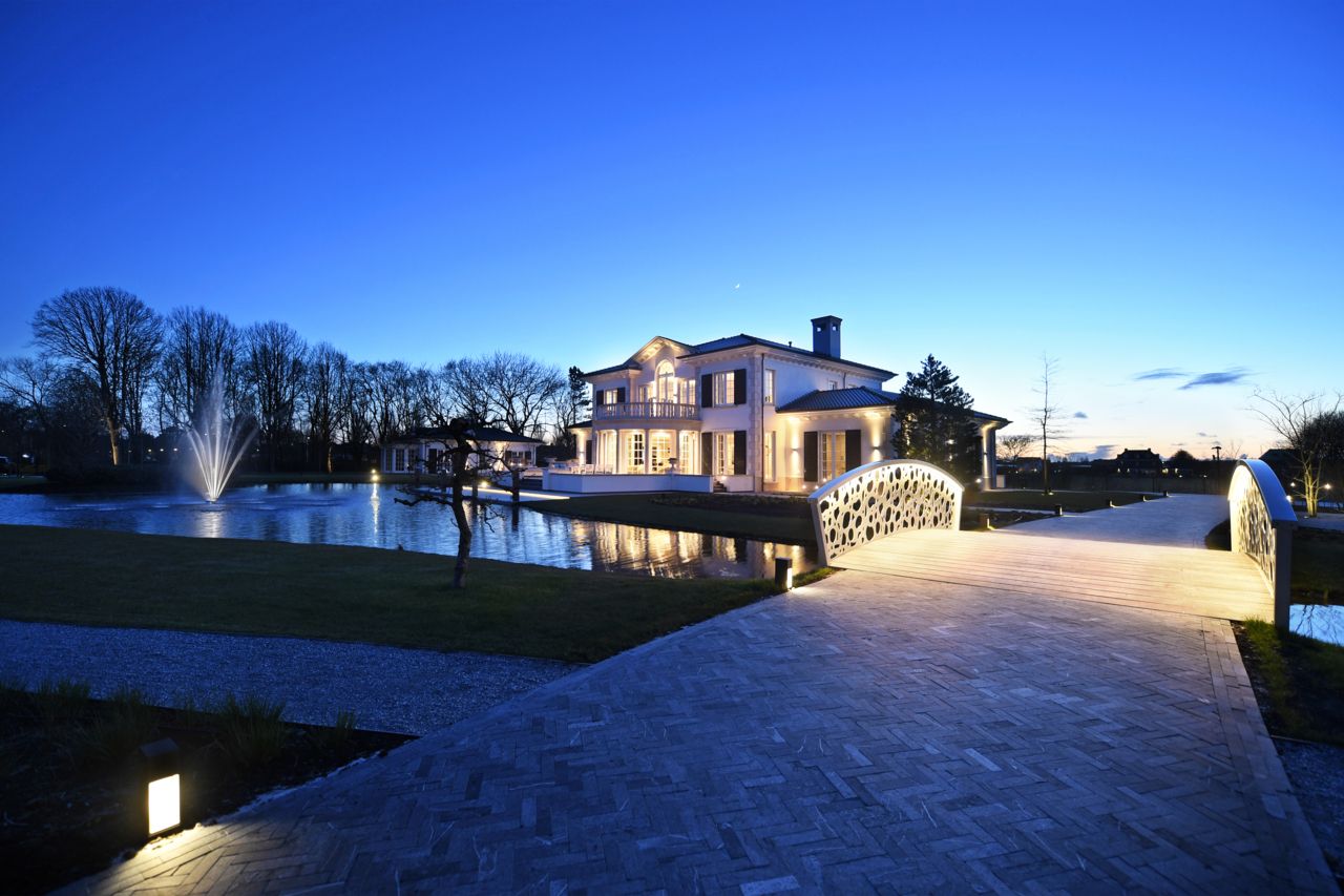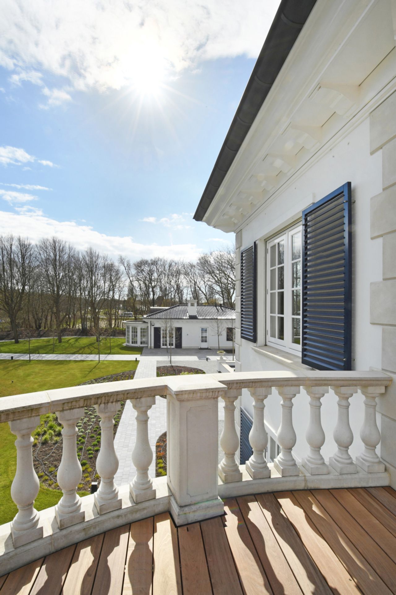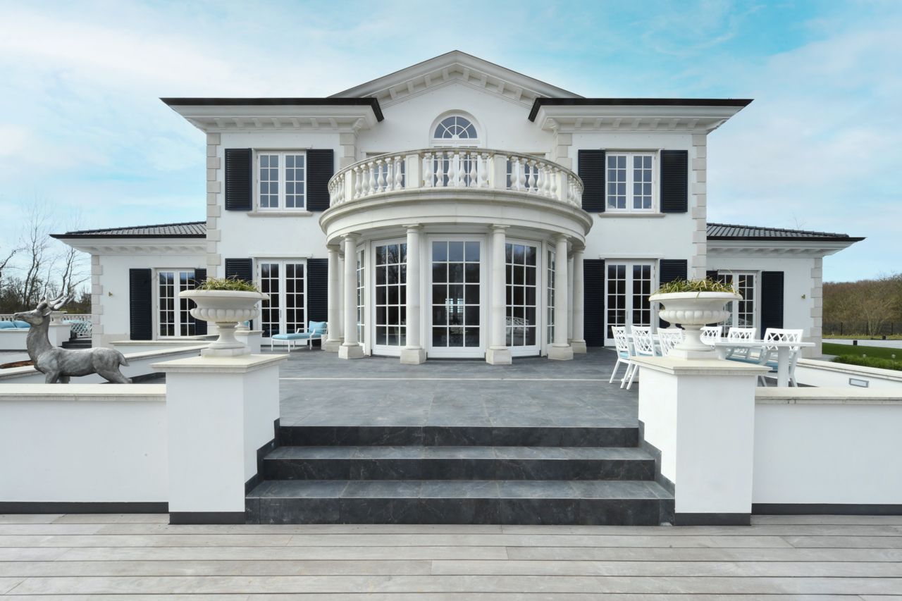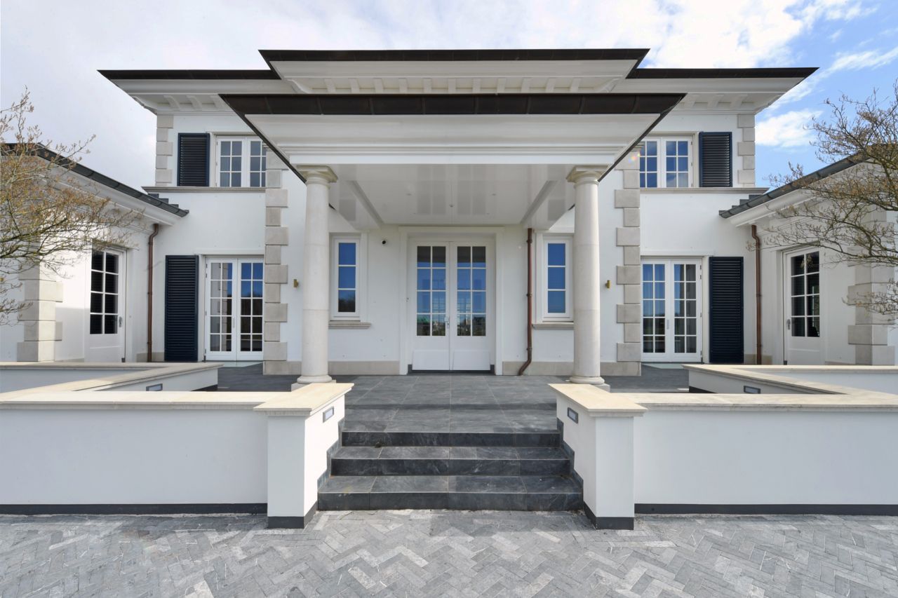 Eigenlijk bestaat het project uit 3 objecten. Het statige landhuis en 2 identieke, aan beide zijden van het landhuis gesitueerde vrijstaande villa’s. Zij vormen als het ware de koetshuizen van dit landhuis. Het landgoed, want zo mogen we het wel noemen, wordt ontsloten door een tweetal entreepoorten die de bewoners en bezoekers de mogelijkheid geven een rondje te rijden.