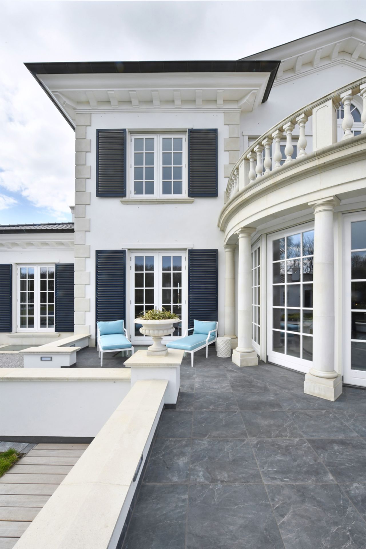 Qua materialen hebben zowel het landhuis als de villa’s wit gestuukte gevels met natuurstenen elementen. De daken zijn afgewerkt met blauw geglazuurde dakpannen, fraai gedetailleerde goten met gootklossen en koperen hemelwaterafvoeren; het geheel zorgt voor een rijk totaalbeeld.