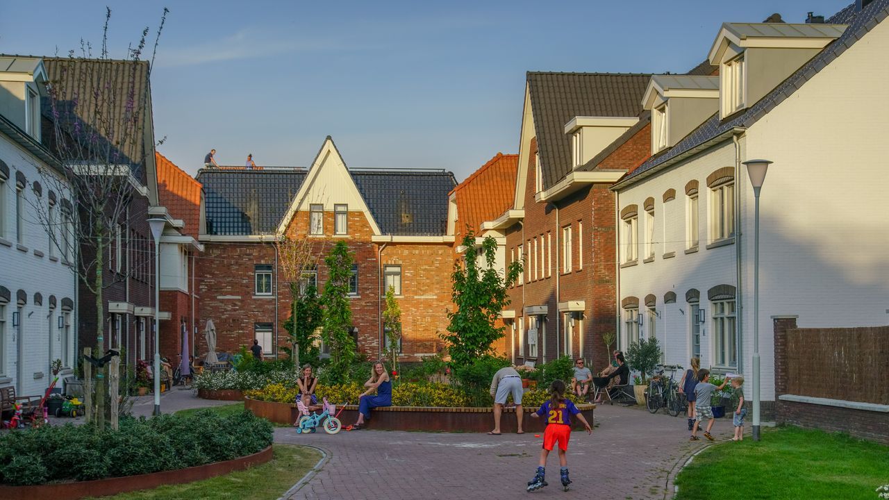 In het middengebied van de wijk staan diverse aan elkaar geschakelde woningtypes. Deze woningen zijn ontworpen om een gezellige, dorpsachtige sfeer te creëren. Ze sluiten visueel op elkaar aan, maar behouden elk hun eigen karakter. Dit zorgt voor een dynamisch straatbeeld waarin de woningen zich moeiteloos aanpassen aan de omringende architectuur van Oegstgeest, terwijl ze hun eigentijdse uitstraling handhaven.