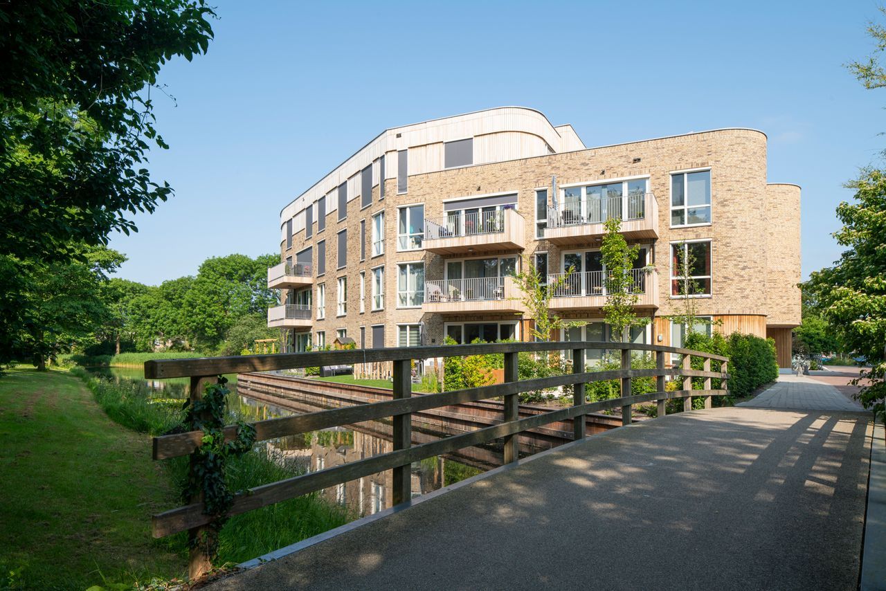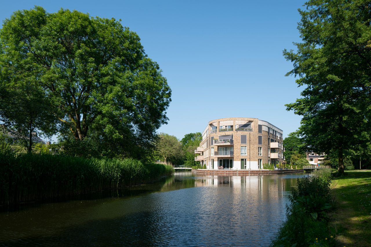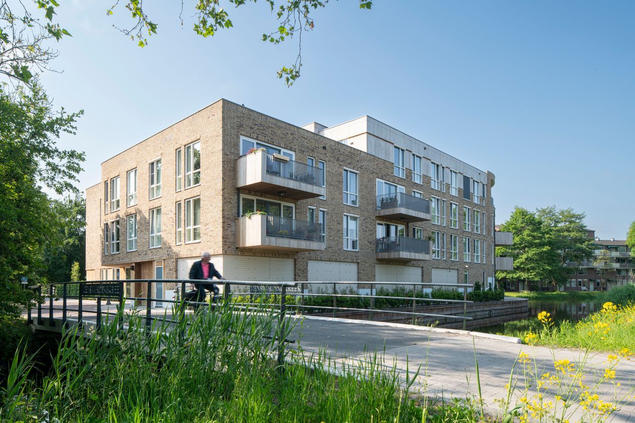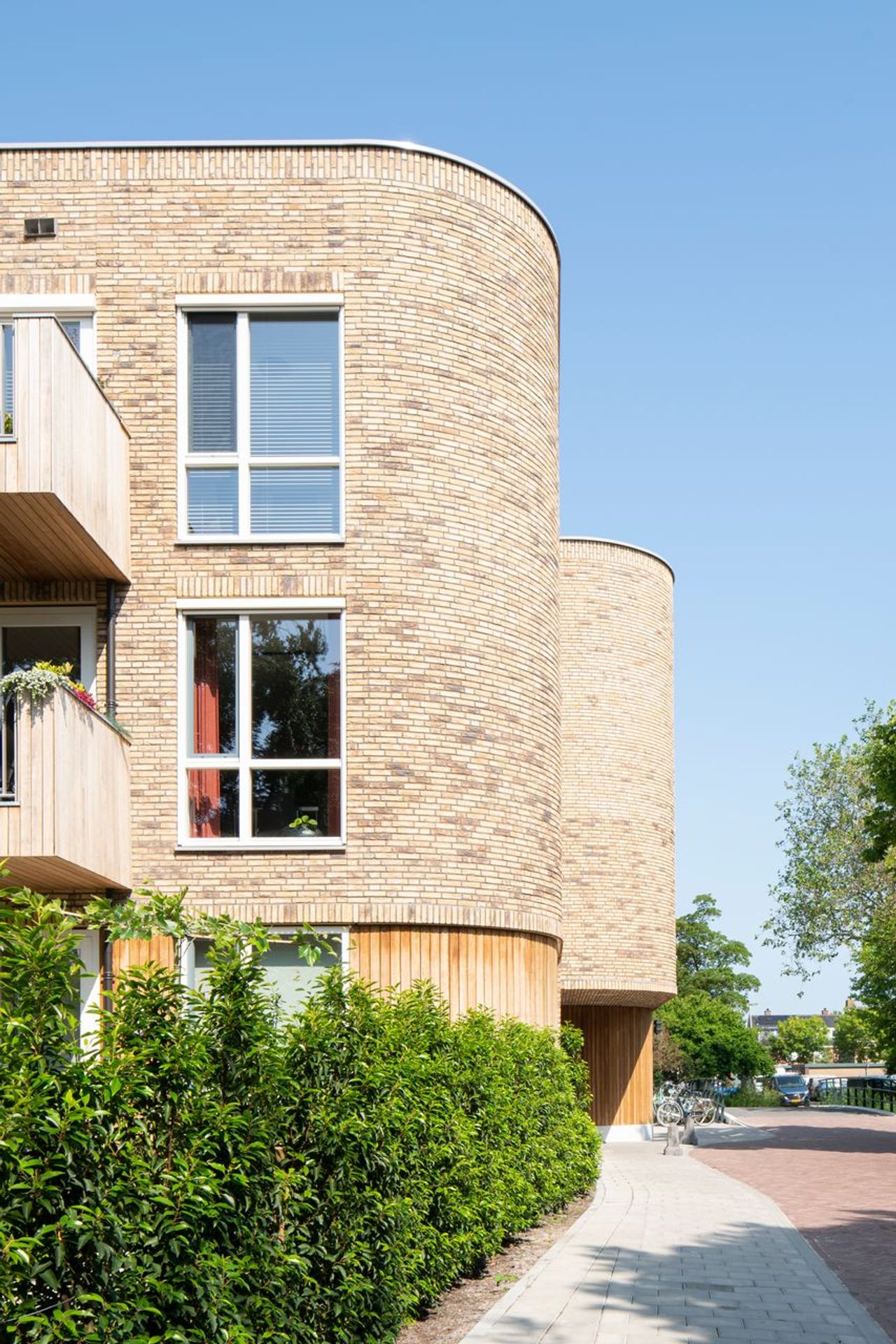 Op de plek van de voormalige Menswordingkerk in Leiderdorp is een nieuwbouw appartementengebouw verrezen die recht doet aan de plek. Inspiratie voor de architectuur komt voort uit de bijzondere vorm van het kavel: een soort schiereiland met een scherp afgeronde hoek. De gevels van het pand volgen de vloeiende lijnen van de locatie en is terugliggend gepositioneerd, zodat de waterkant met groenstrook duidelijk rondom loopt. De vloeiende lijnen zijn als rondingen in het appartementengebouw verwerkt. De kop van het gebouw heeft een bescheiden hoogte accent op het splitsingspunt aan het water. Een dynamisch gebouw met een alzijdige oriëntatie als resultaat.