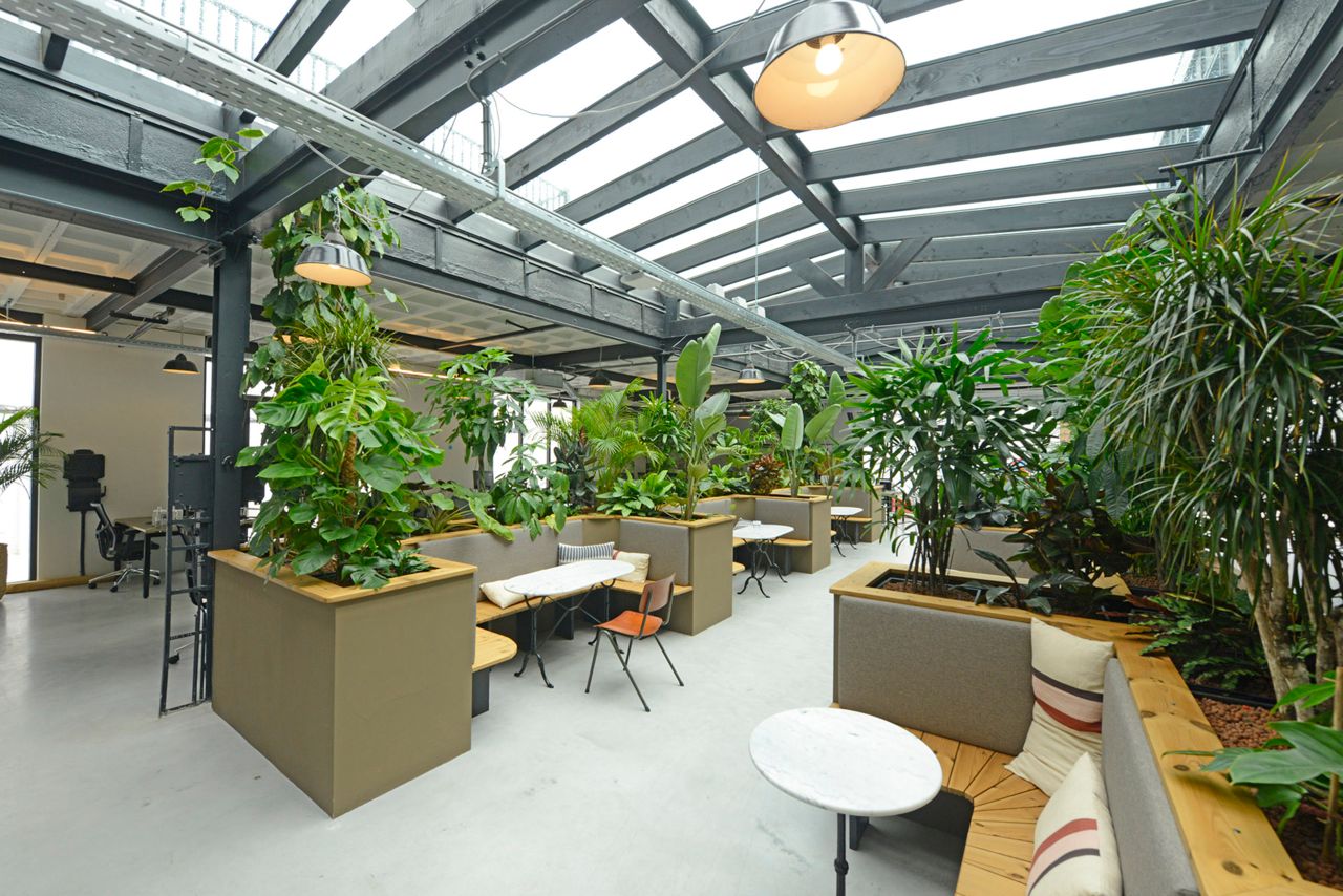 Het gebruik als kantoor heeft hoge comforteisen als het aankomt op het binnenklimaat. Vanzelfsprekend was hier een grote winst te behalen door een upgrade van de bestaande schil. De gevels zijn aan de binnenzijde geïsoleerd met hoogwaardige isolatie om de metselwerk gevels in het zicht te laten. Voor de daken is voor het tegenovergestelde gekozen, waarbij de isolatie aan de bovenzijde van het dak aangebracht is, zodat de bestaande betonnen plafond cassetes zichtbaar blijven vanuit de binnenzijde. Gezien de grote dieptes van de panden zijn er op verschillende plekken grote lichtstraten en patio’s gerealiseerd om te voorzien in voldoende daglicht. Met de toevoeging van de vele planten in de lichtstraten wordt het buitengevoel hier nog meer versterkt.