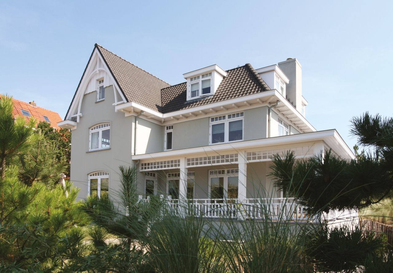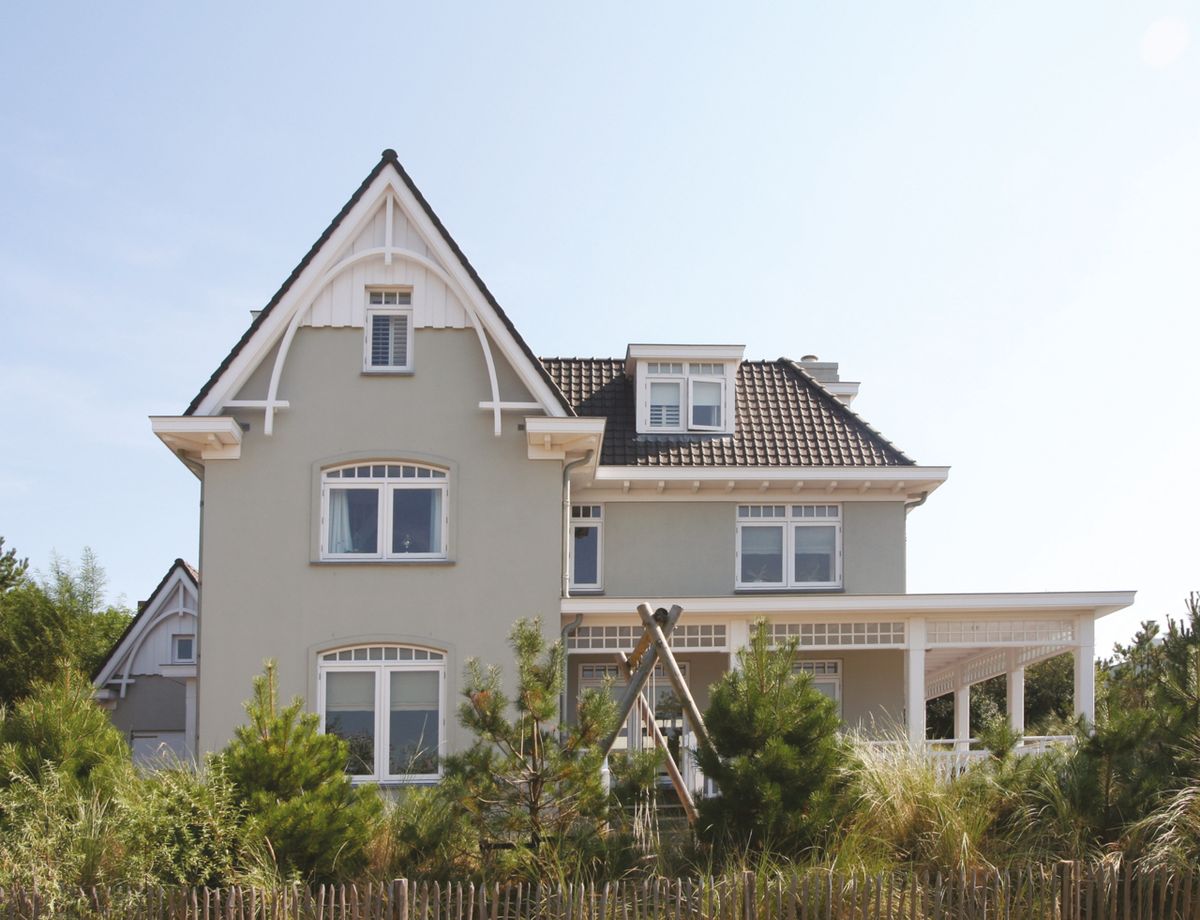 Boven op een duin aan de Beethovenstraat bezorgt deze villa een blijvend vakantiegevoel. Het ontwerp is representatief voor de Noordwijkse Stijl. De woning heeft een zandkleurig gestukte gevel en is voorzien van een rijke detaillering. De veranda rondom het hele huis verlengt het buitenleven. Vanwege het hoogteverschil op het kavel wordt de veranda bij het zwembad in de achtertuin een balkon.