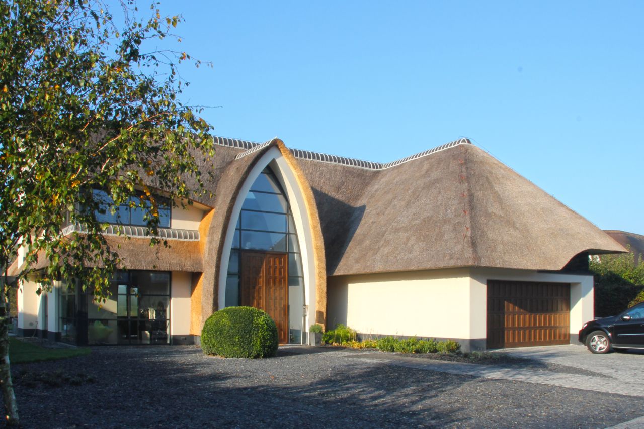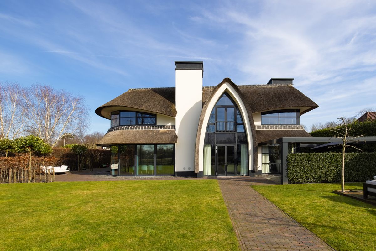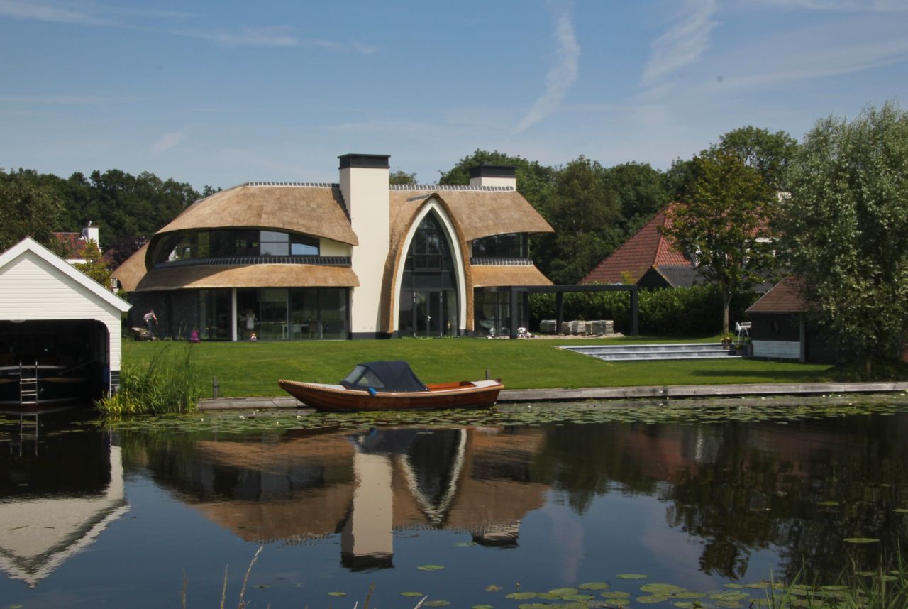Op deze plek aan open water in Warmond heeft een woning uit de jaren zestig plaatsgemaakt voor een moderne interpretatie van een landelijke rieten kapwoning.