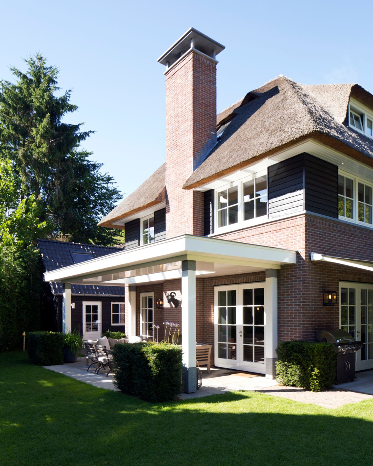 In een van de mooiste lanen van Wassenaar, nabij kasteel Oud Wassenaar, hebben we samen met de opdrachtgever gekozen voor een traditioneel ontworpen woonhuis - opgetrokken in rode baksteen en een rietgedekte kap. De witte kozijnen en de zwarte gepotdekselde delen zorgen voor een fris contrast. Het huis is zo gepositioneerd op het kavel dat optimaal geprofiteerd wordt van de zon. De woonvertrekken liggen op het zuiden. Op het zuidwesten is een veranda direct aan de woonkeuken ontworpen met een buitenhaard.