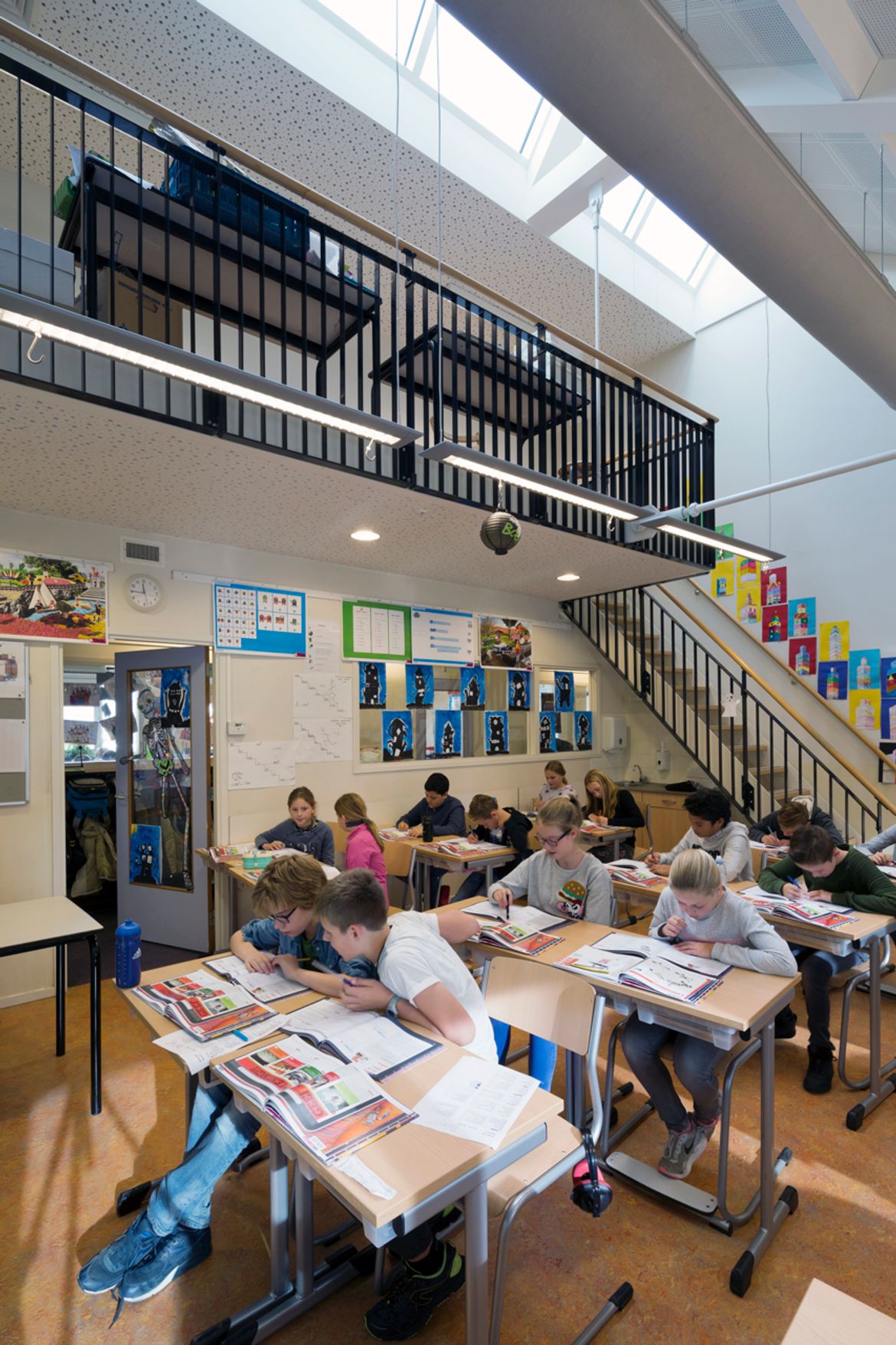 De oude school had 5 lokalen. Door bij de herbouw de kap te benutten en de school plaatselijk te verbreden was er ruimte voor maar liefst 14 lokalen. Ook is er ruimte voor een aparte bibliotheek en een documentatiecentrum. Doordat de speelzaal is toe te voegen aan de hal ontstaat een grote ruimte voor bijzondere gelegenheden. Sommige lokalen hebben een dubbele ruimte in de kap waarin de leerlingen kunnen zitten als ze meer afgezonderd willen werken.