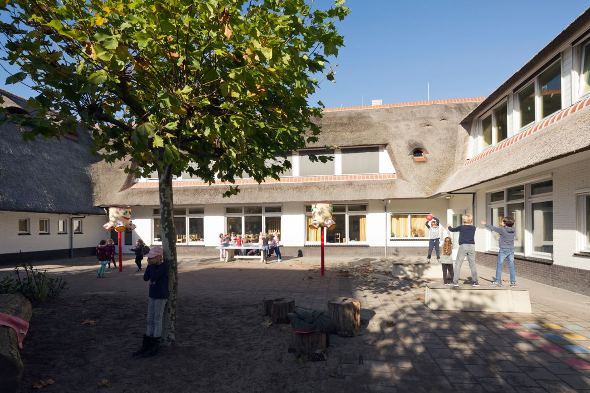 Een enorme uitslaande brand heeft in 2000 de Witte School in de as gelegd. Dit markante witte gebouw met zijn rieten kap, oorspronkelijk ontworpen door de toenmalige dorpsarchitect C. van Vliet, was erg geliefd. Hoewel aanvankelijk het idee was een geheel nieuw ontwerp voor de school te maken, is uiteindelijk besloten de oude uitstraling terug te brengen. Wij mochten deze nieuwe leeromgeving ontwerpen waarin kinderen het beste uit zichzelf kunnen halen.